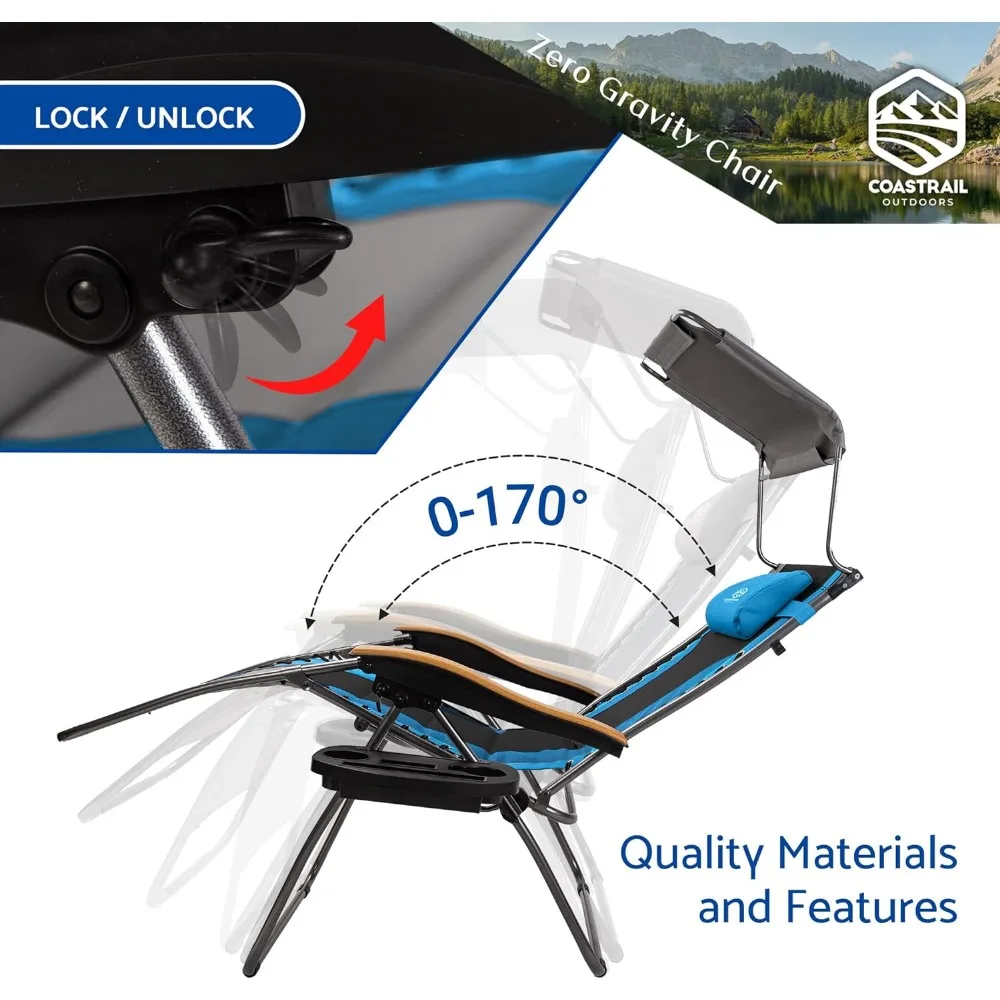 Chair Reclining Lounger with Sun Shade,Padded Seat