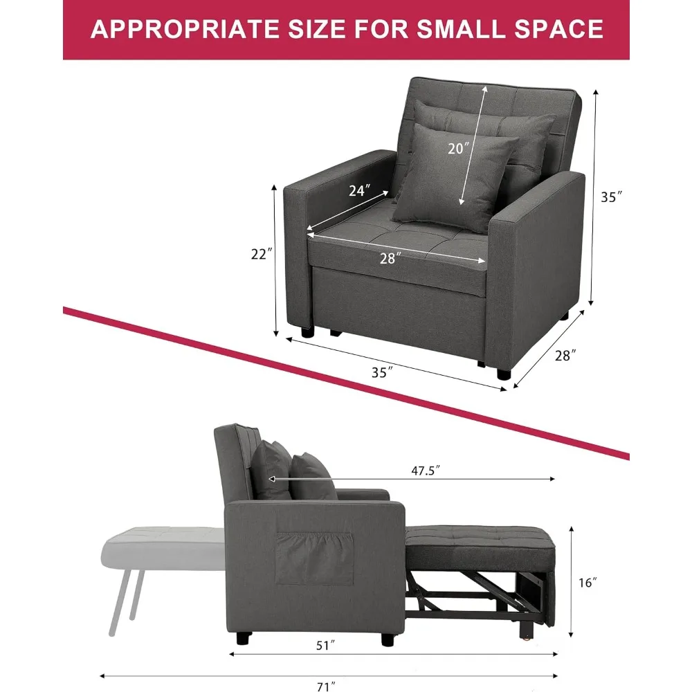 - Appropriate Size - convertible chair sleeper bed focus on providing smart size furniture for people living in the limited space. Which need to be compact, but we still use strong material. That make it could carry over 350lbs.