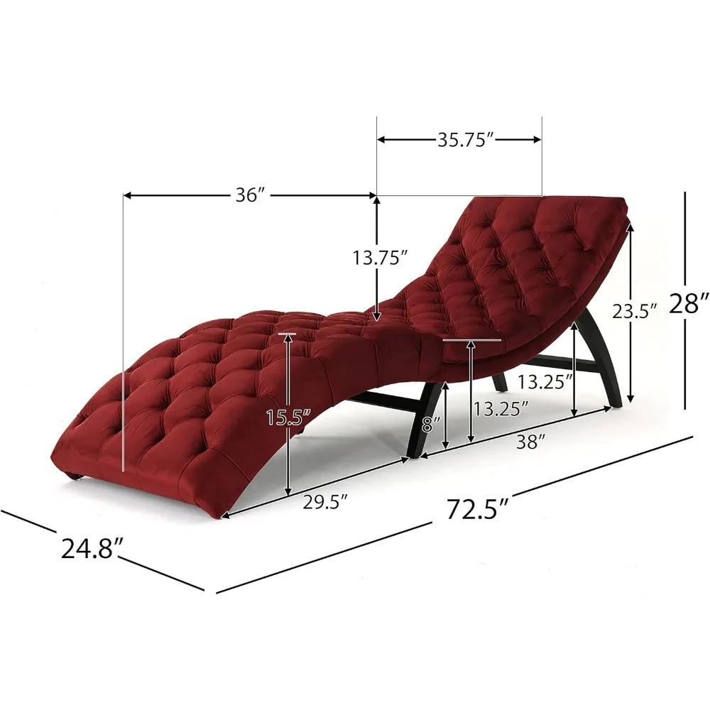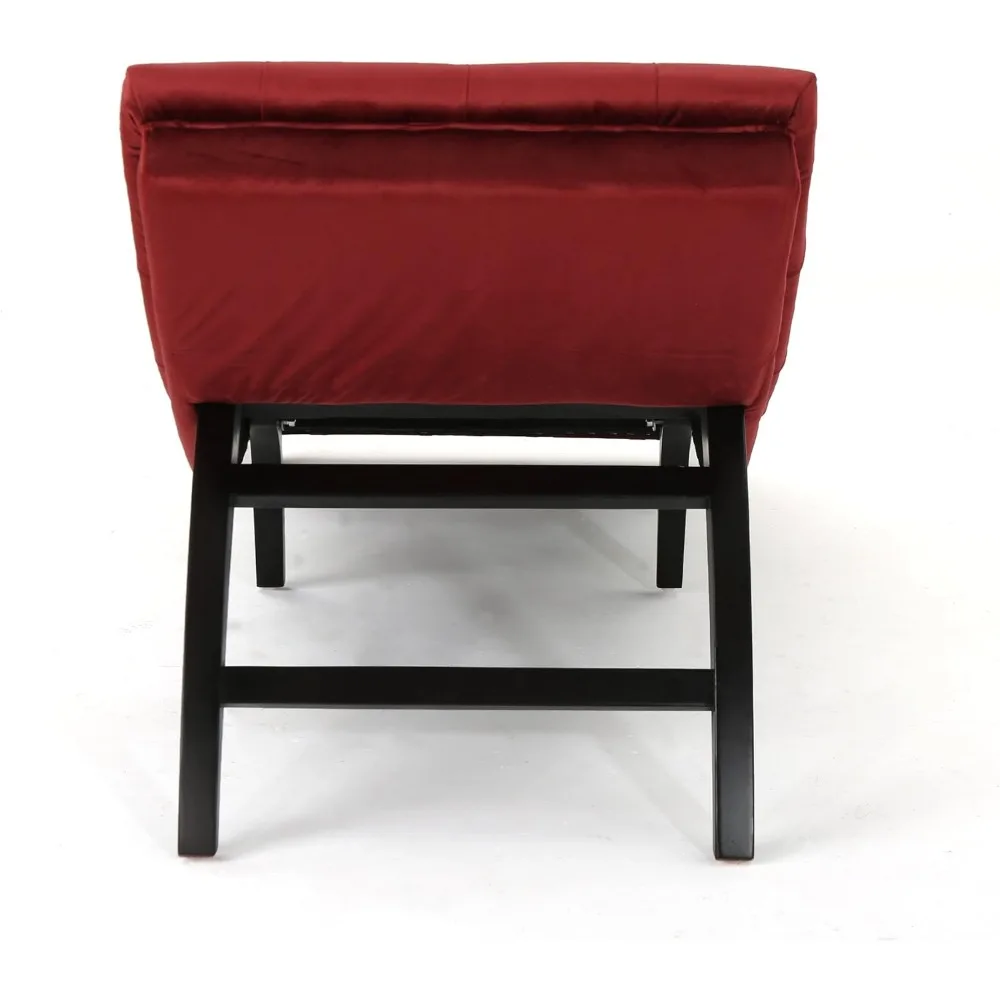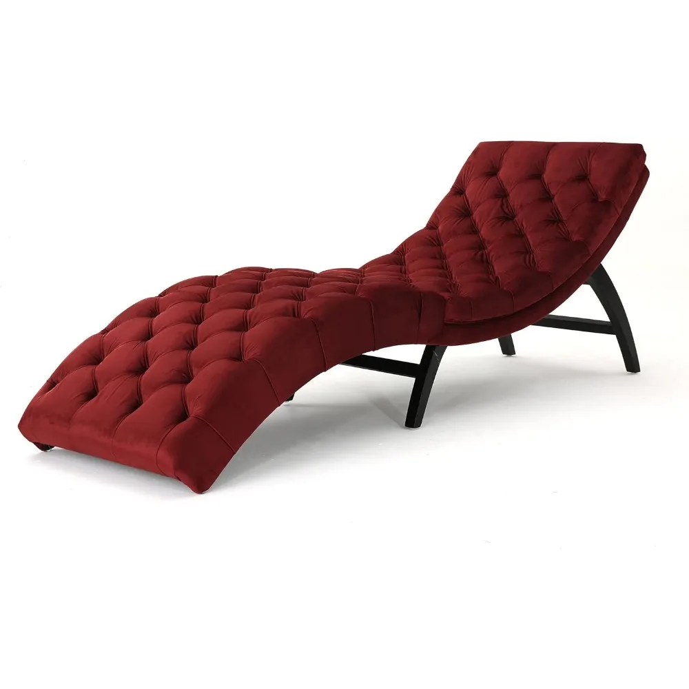 Chaise Lounge Chair, Garnet / Dark Brown, Tufted Velvet