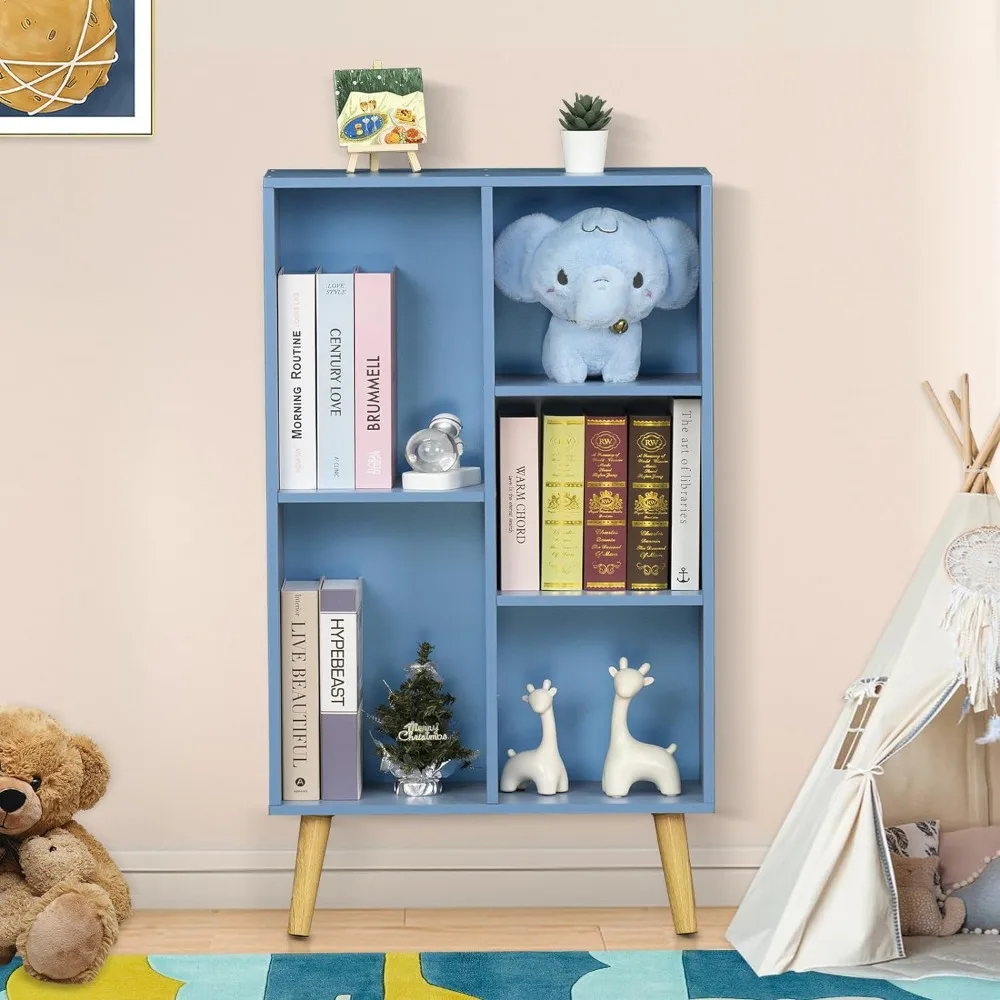 Children's bookshelf, wooden modern bookshelf with legs