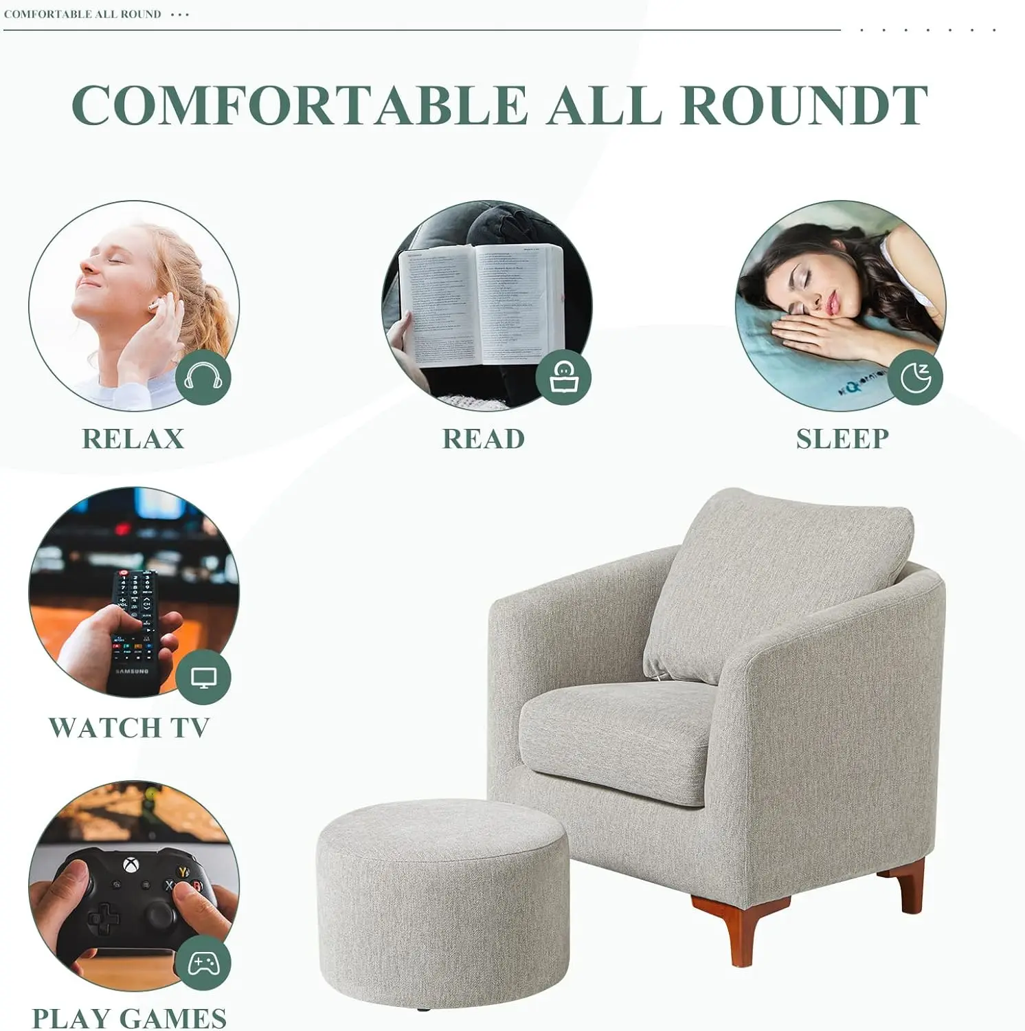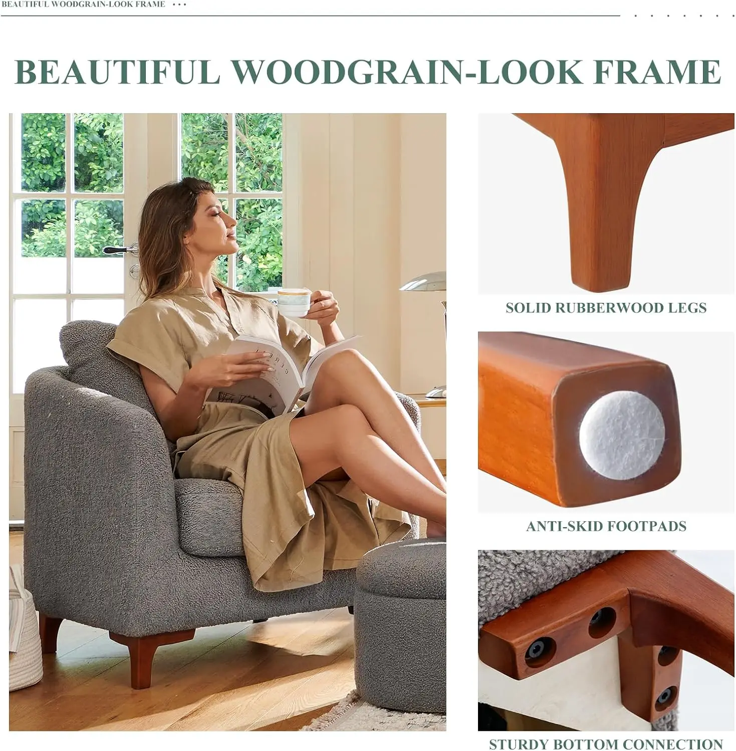 - ๐ Durable & Long-Lasting: Constructed with a solid wood frame and high-quality sponge, this reading chair with foot rest is designed for long-lasting comfort without deformation. The rubber solid wood legs come with anti-skid pads at the bottom for balance and floor protection, supporting up to 300 pounds.
