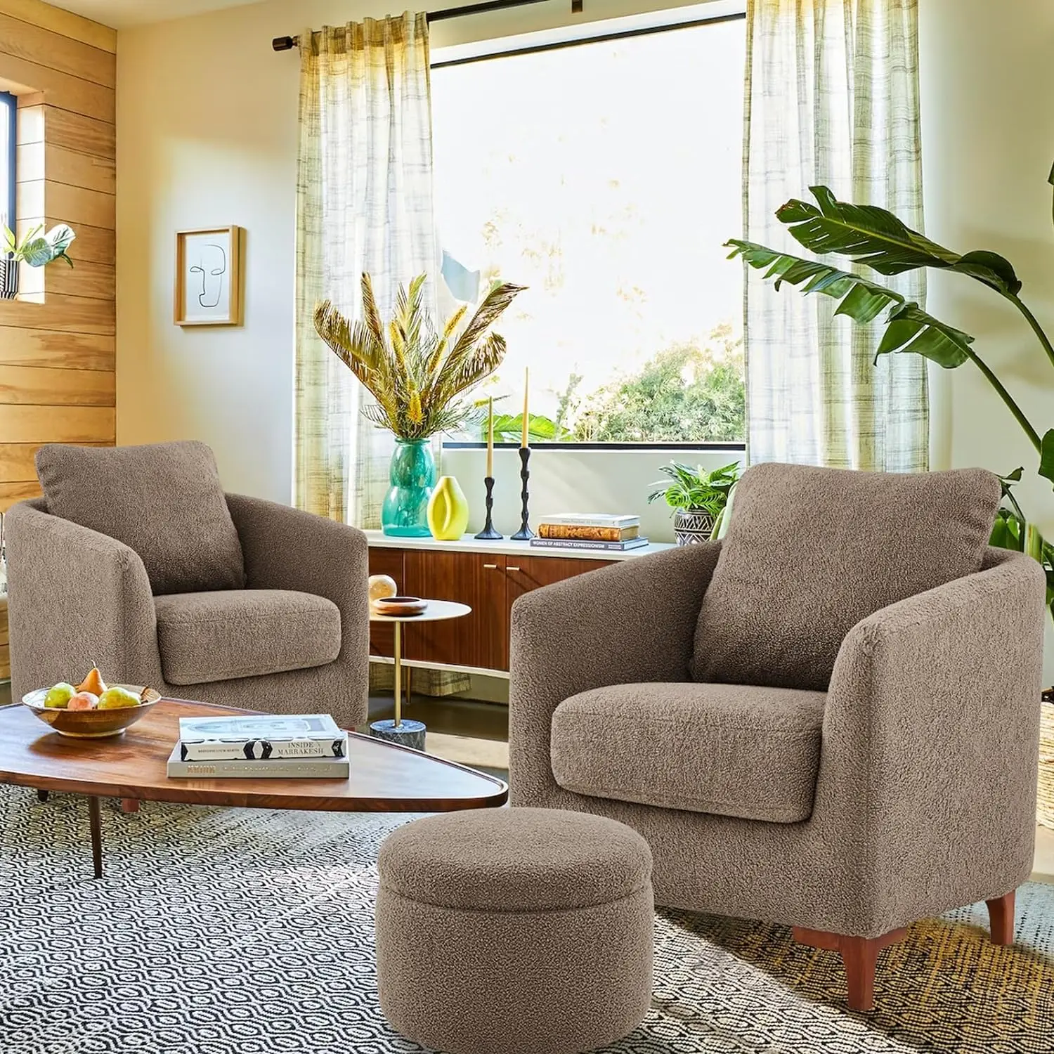 COLAMY Sherpa Accent Chair with Storage Ottoman