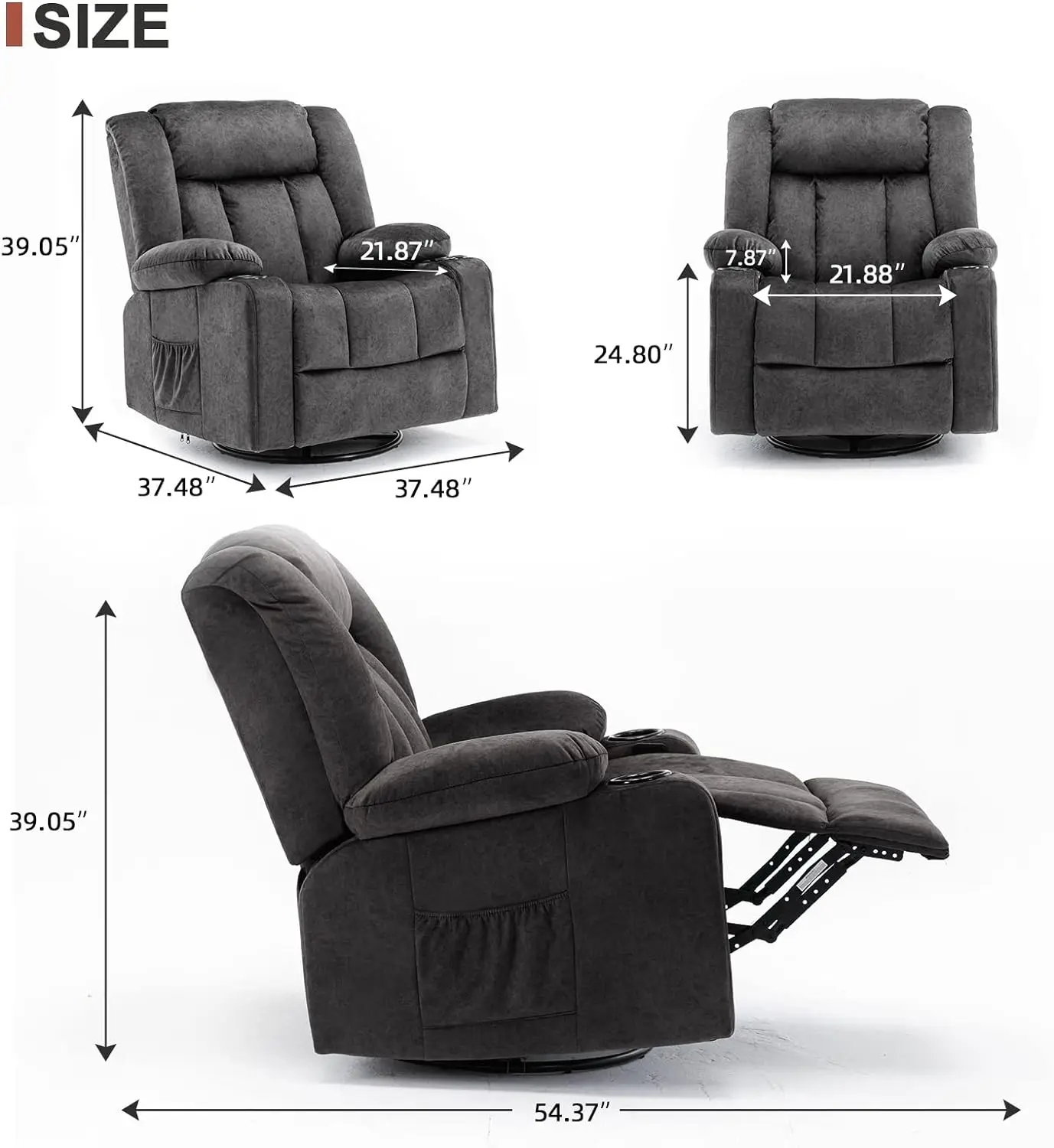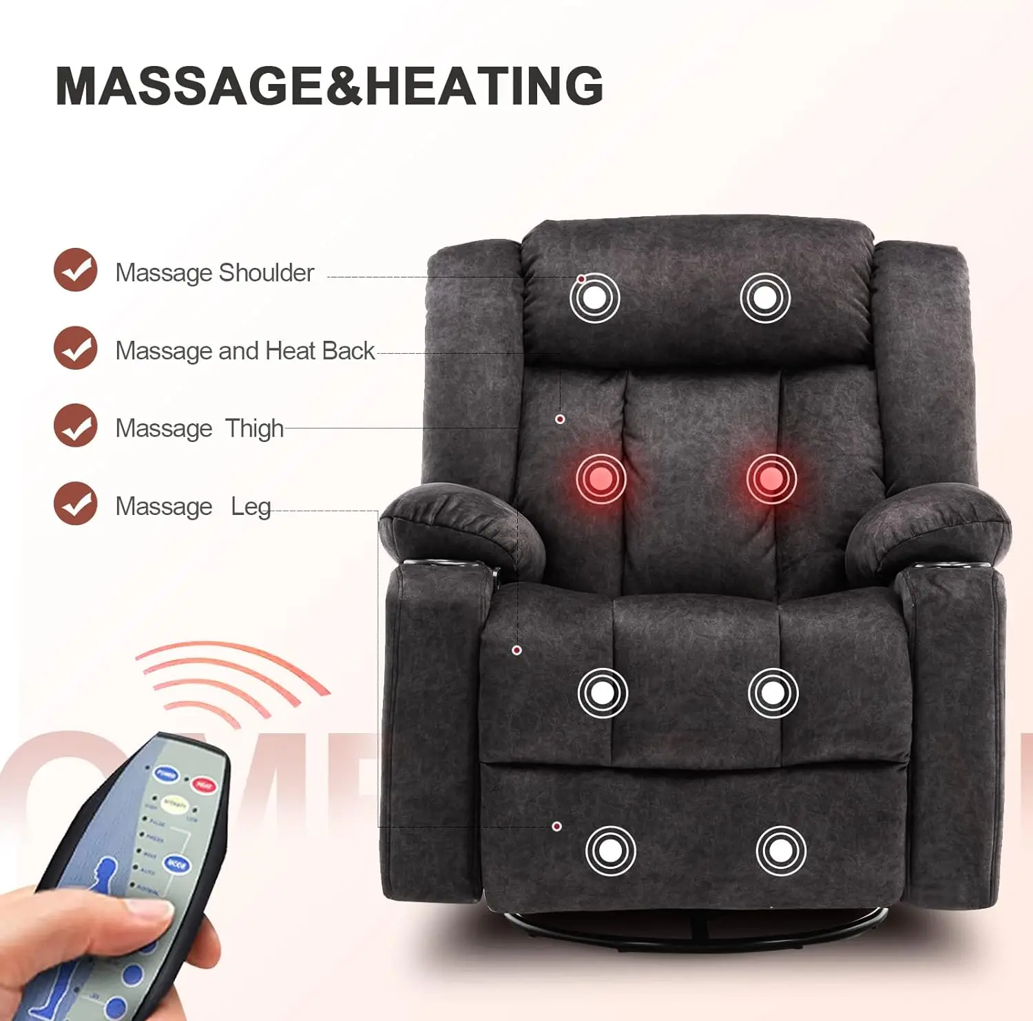 COMHOMA Recliner Chair Massage Rocker with Heated 360 Degree Swivel