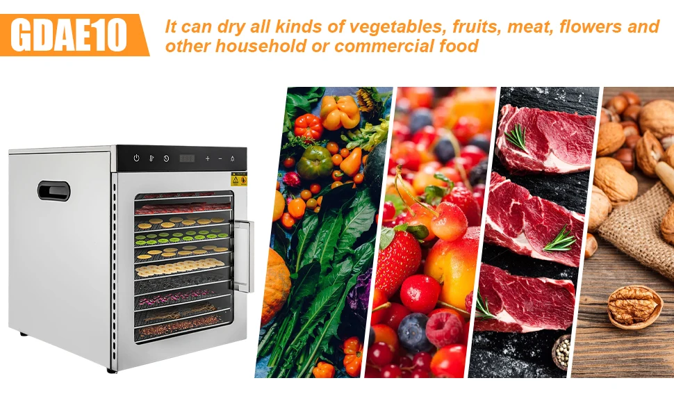 Commercial 10 Tray Dehydrator Fruit And Vegetable Dryer Industrial