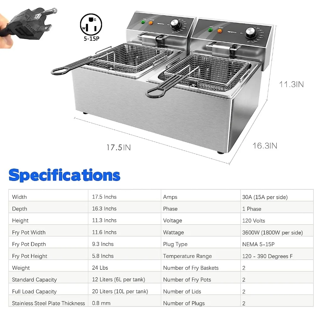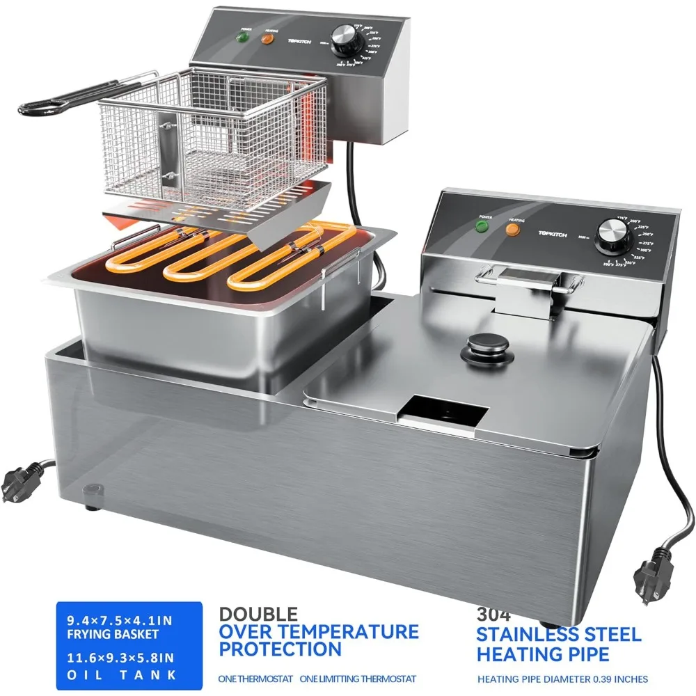 Commercial Deep Fryer Stainless Steel Dual Tank with 2 Baskets