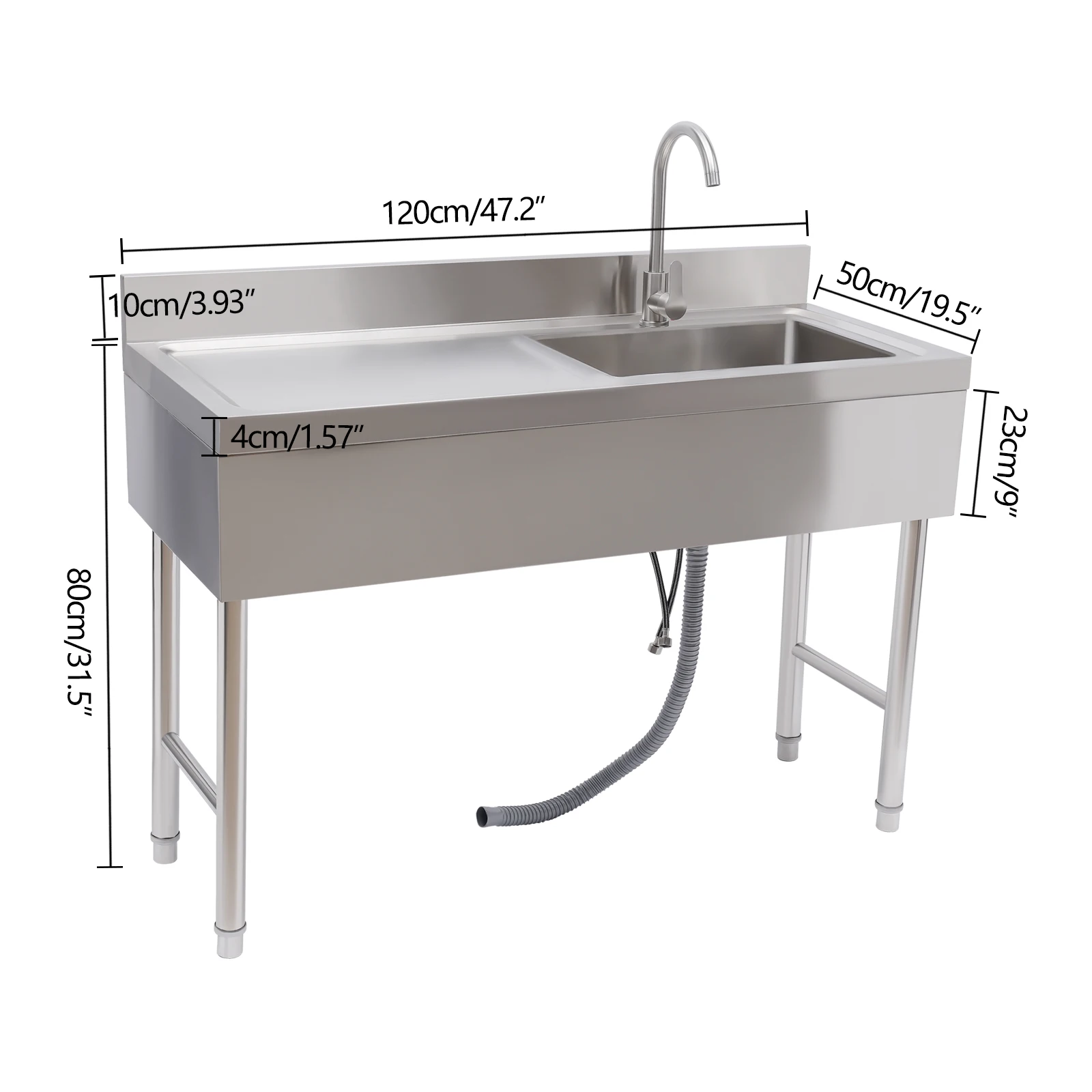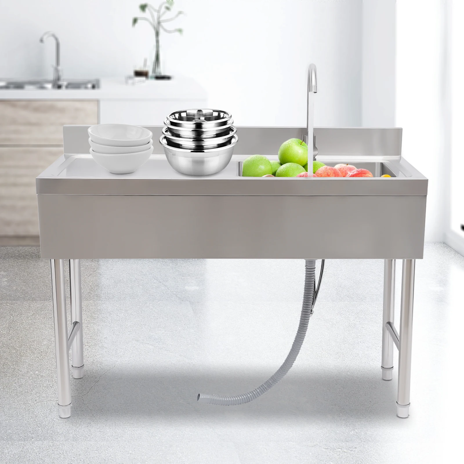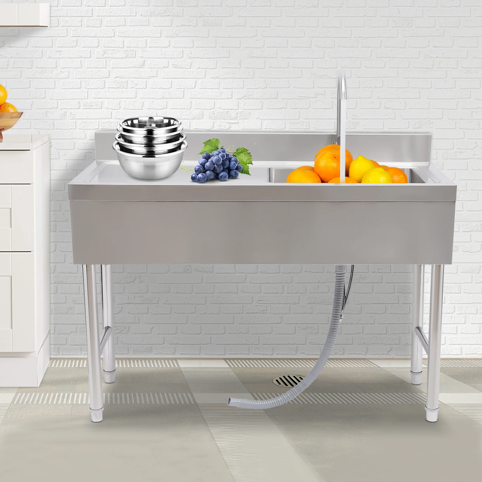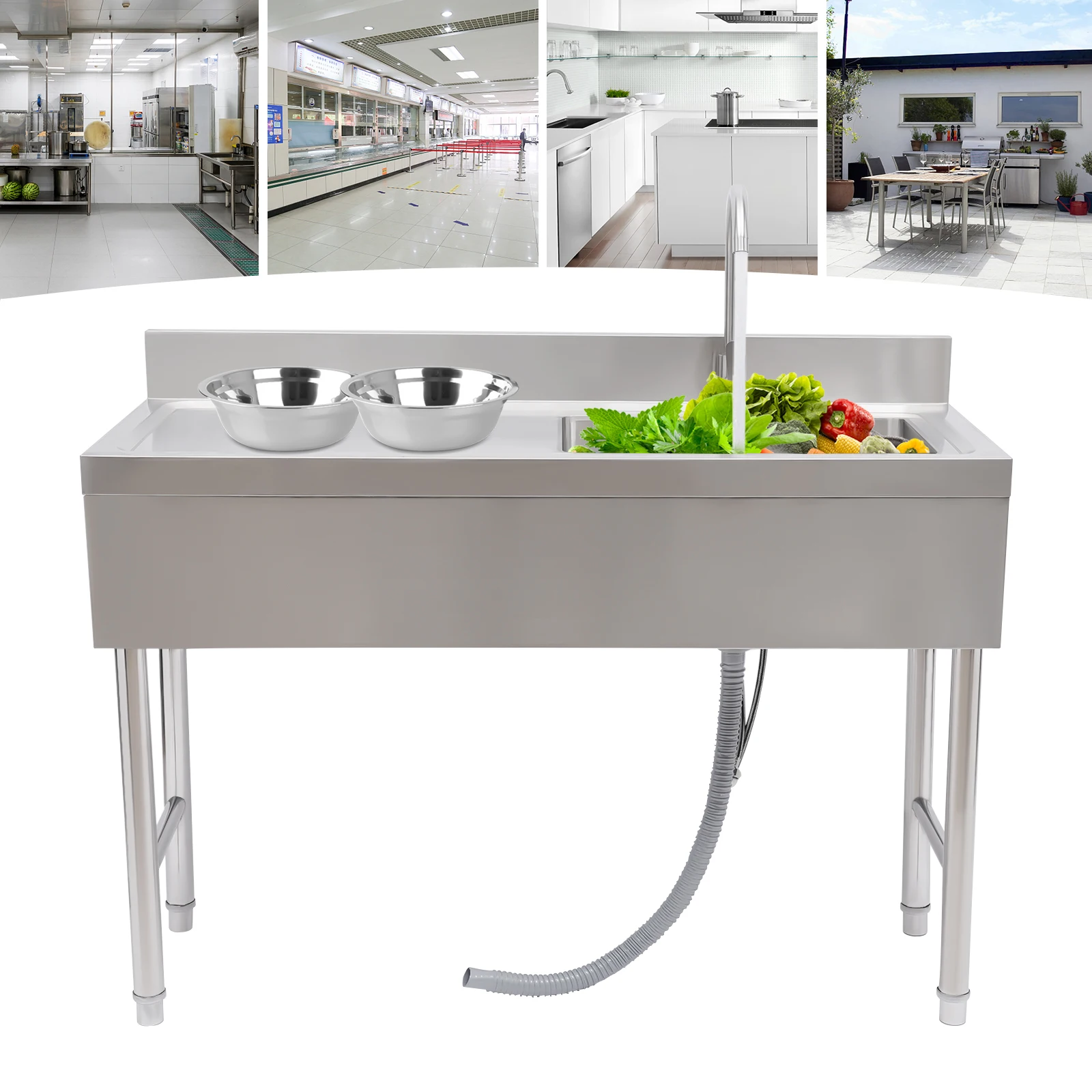 Commercial Kitchen Sink Prep Table w/ Faucet Single Compartment