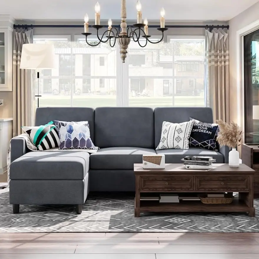 Convertible Sectional Sofa Couch Linen Fabric L-Shaped , 3-Seat Sofa
