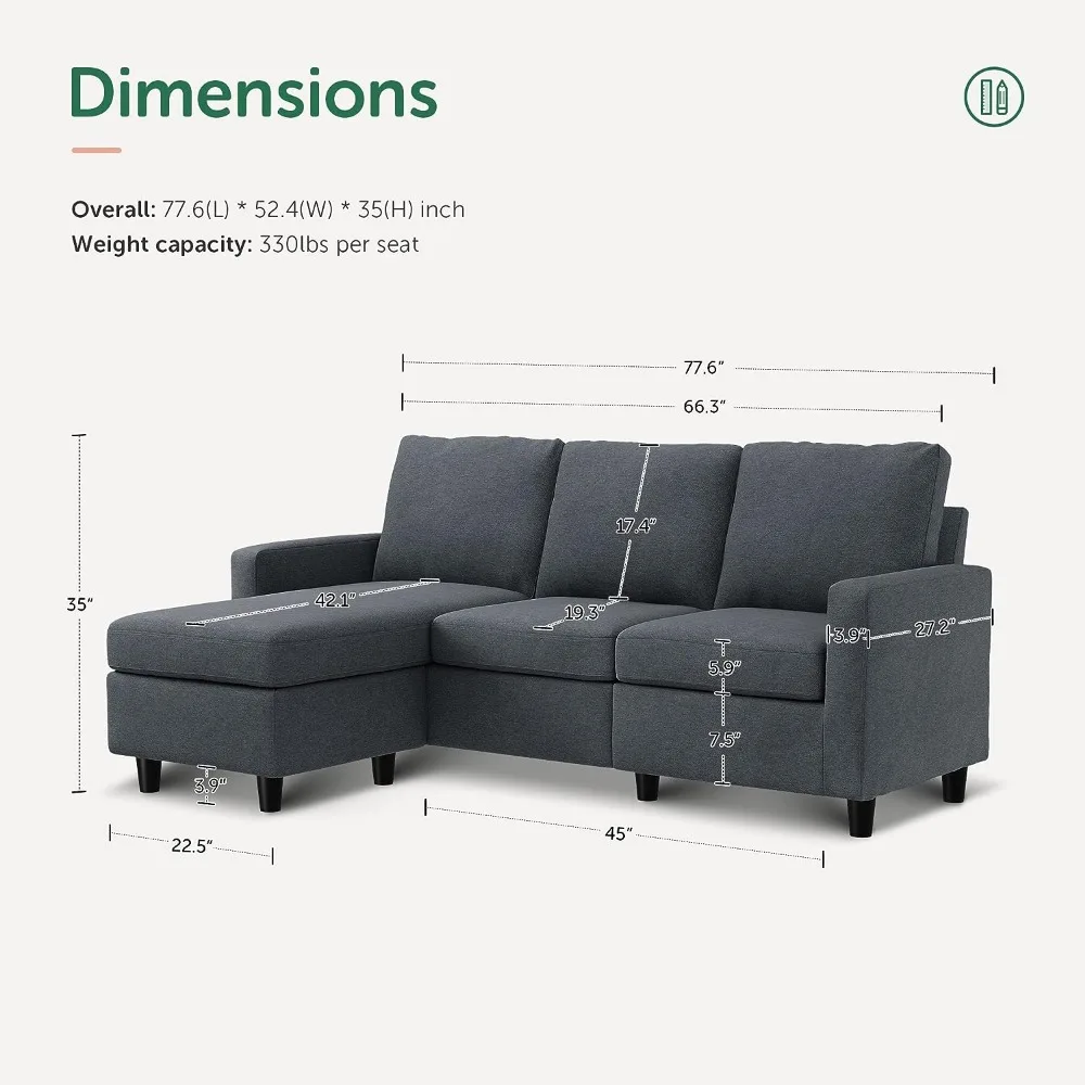 Convertible Sectional Sofa, L Shaped Couch with Reversible Chaise