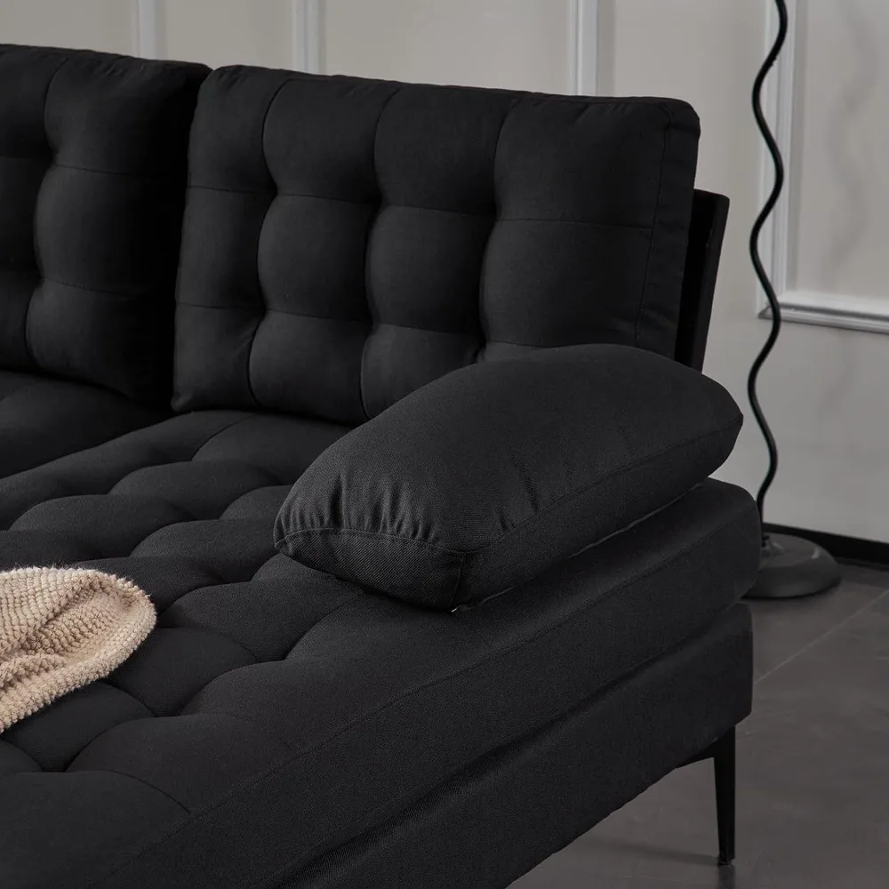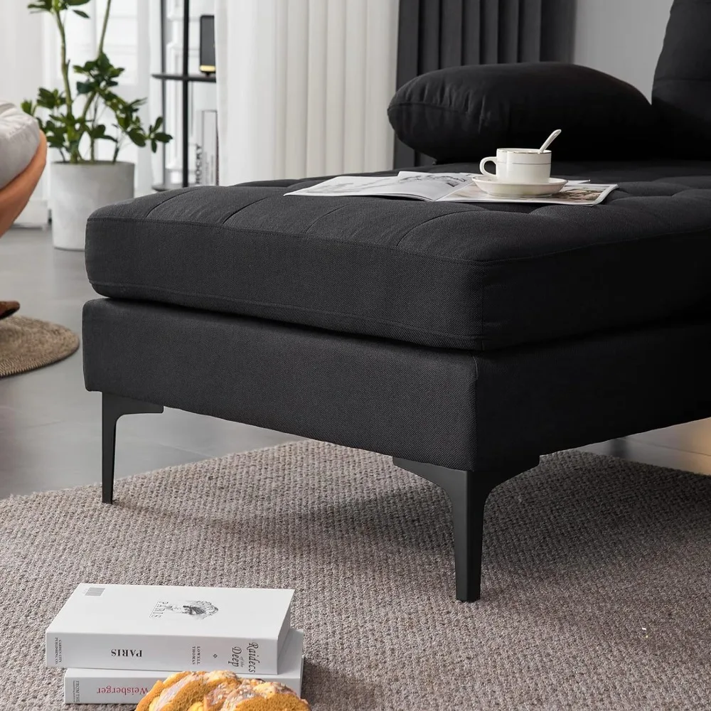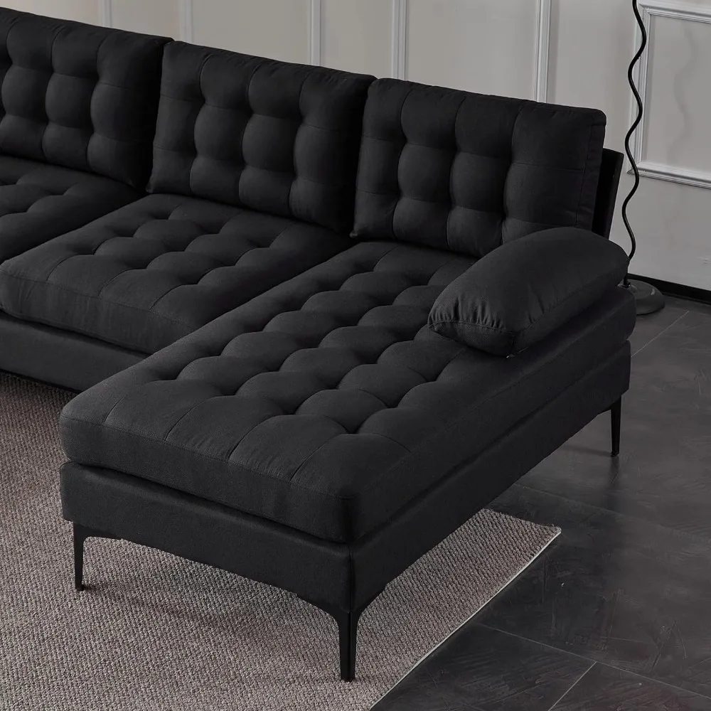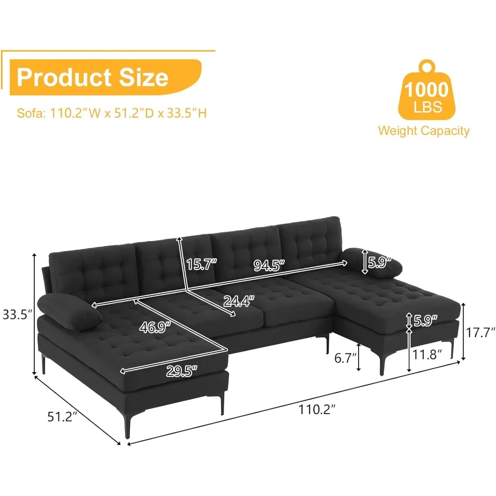 Convertible Sectional Sofa with Double Chaises & Metal Legs
