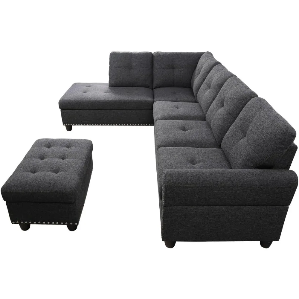 Convertible Sectional Sofa with Storage Ottoman, 2 Cup Holders