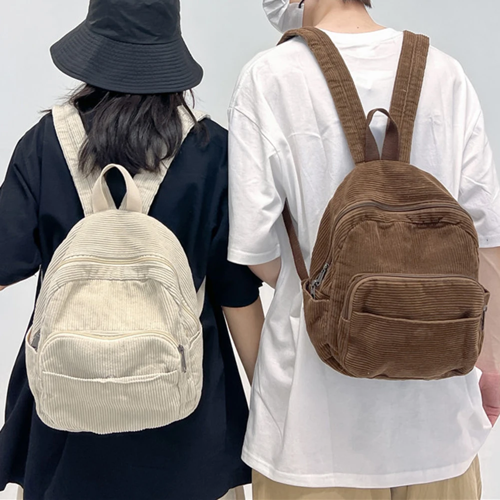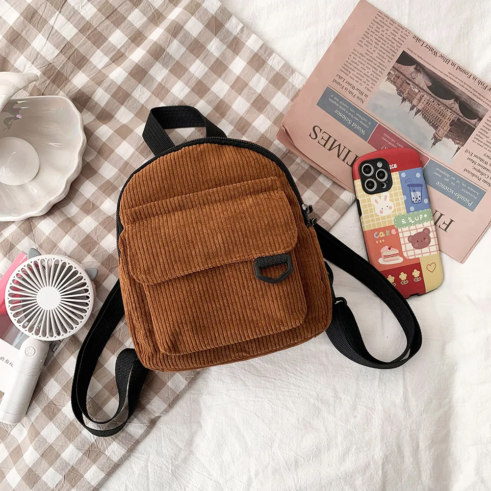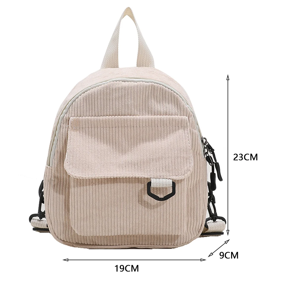 Corduroy Mini Backpack Multiple Pockets School Bag