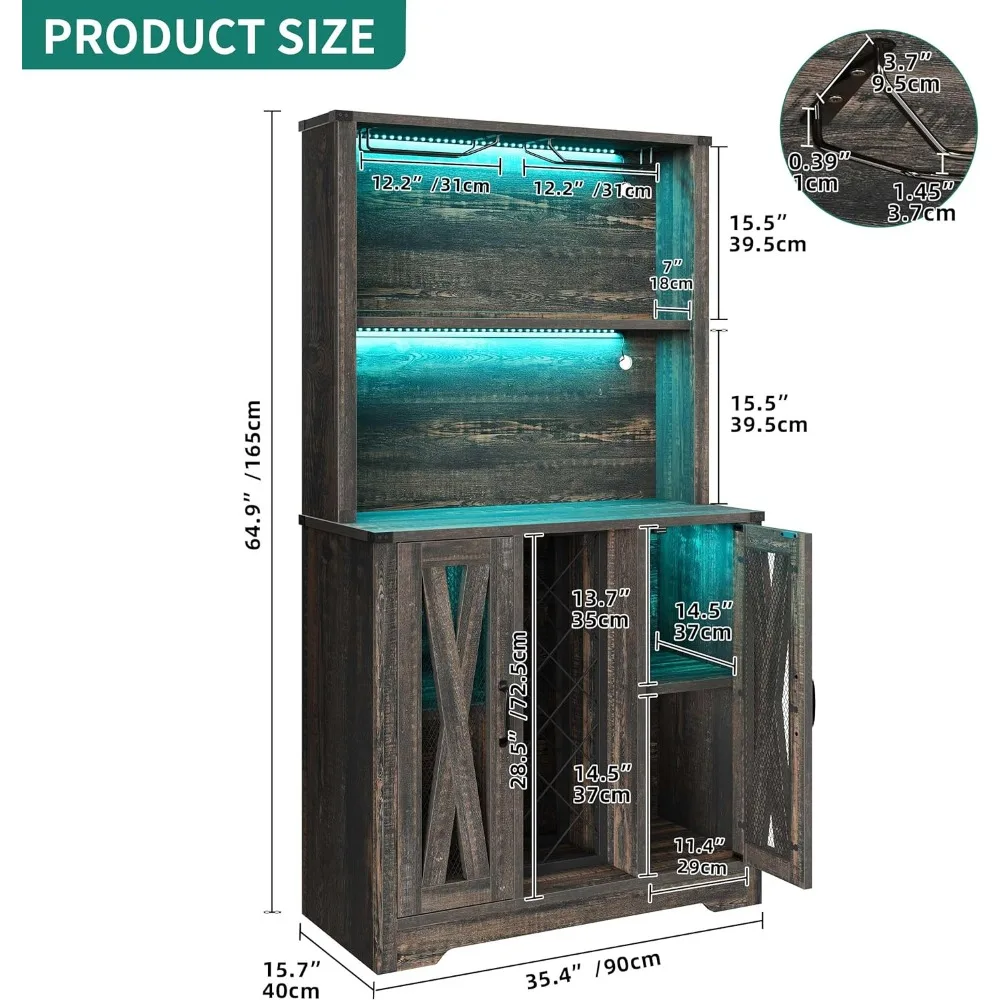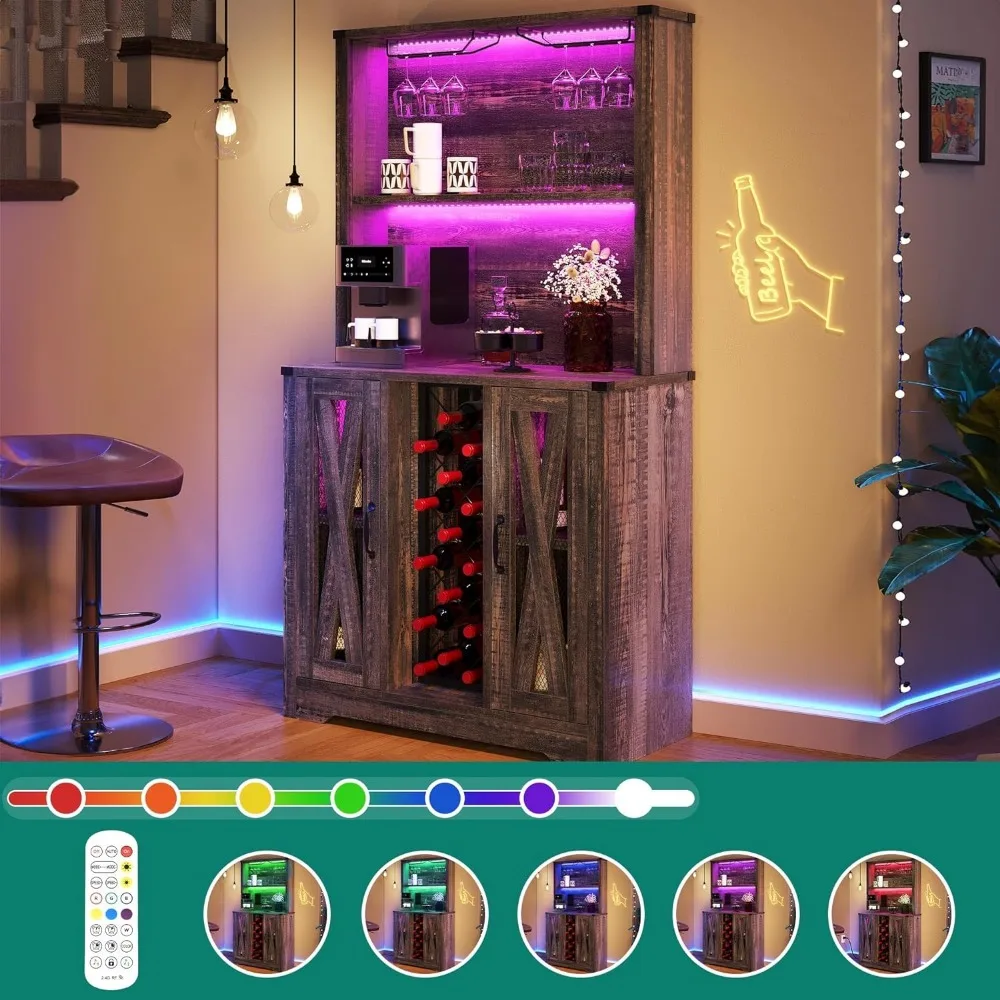 - Bar Cabinet with LED Light: The wine cabinet equipped with 2 adjustable LED light bands, convenient for you to showcase your favorite wine and glass, More than 20 colors great for add charm to your home and create a comfortable and romantic atmosphere.