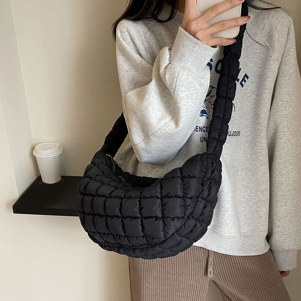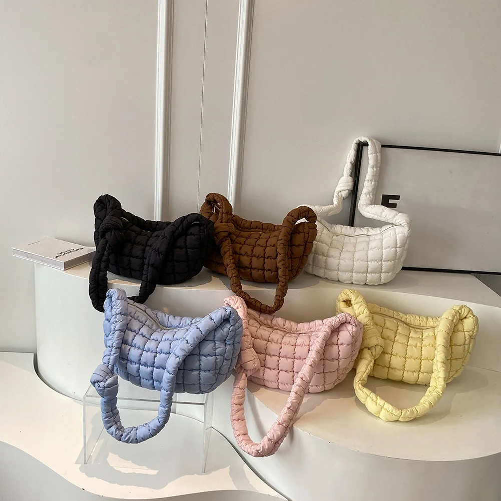 Cotton Embroidered Thread Satchel Pleated Bubbles