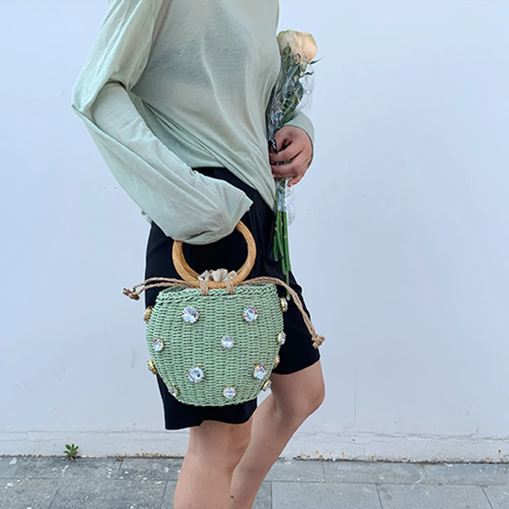 Diamonds Women Top-handle Bags Woven Rhinestone Bucket Bag