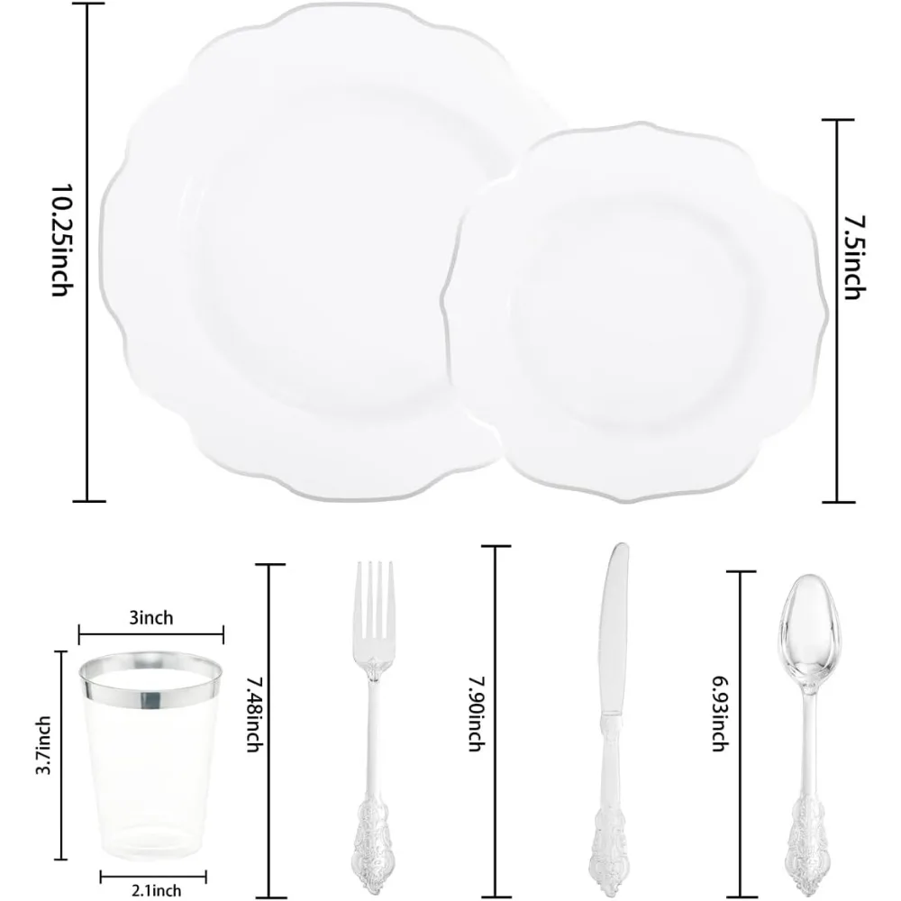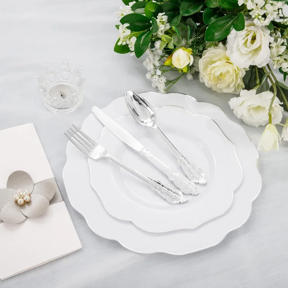 - Glossy Finish: Sleek silver plates have a glossy finish that adds a touch of elegance.