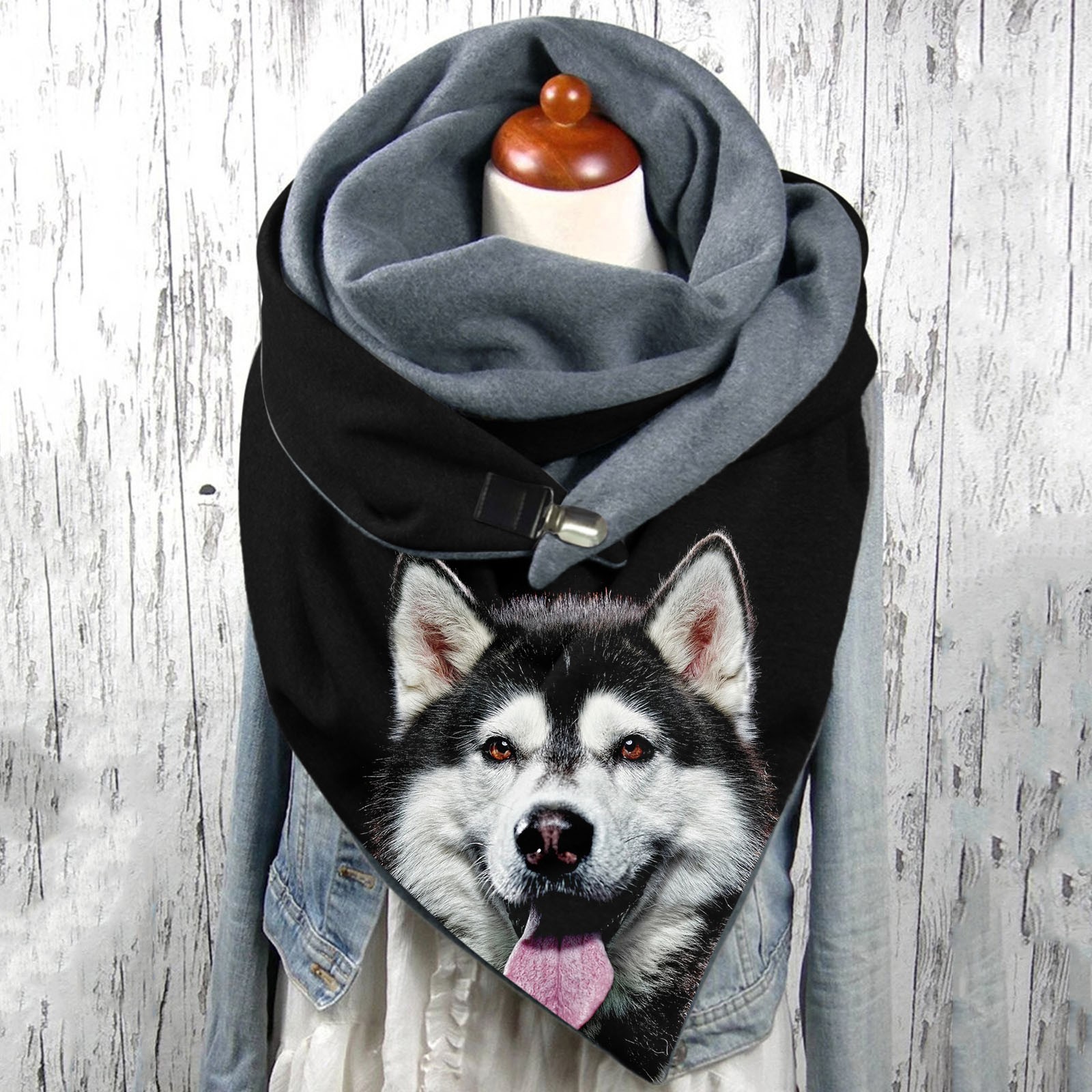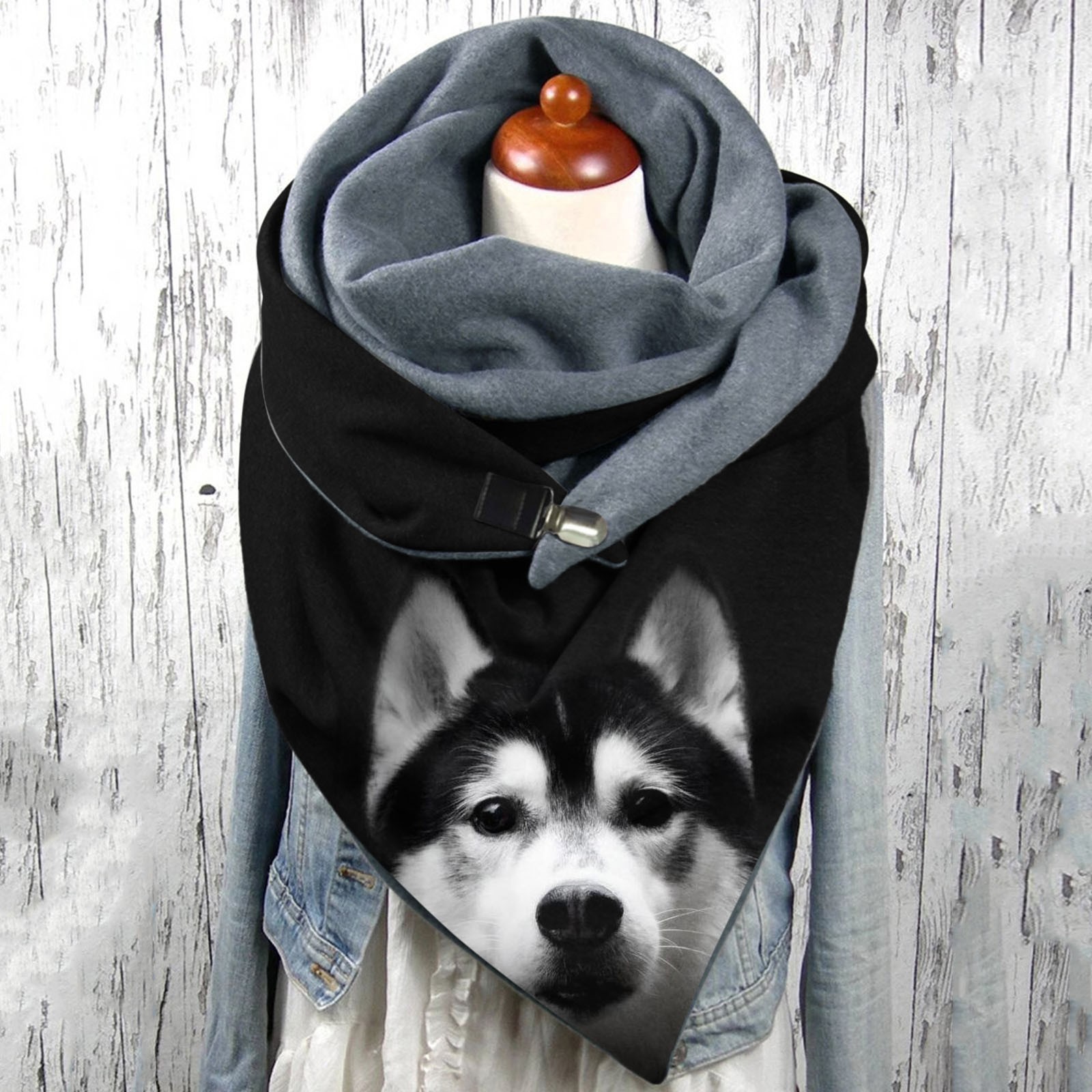 Dog Animal Print Scarves Women Warm Winter Velvet