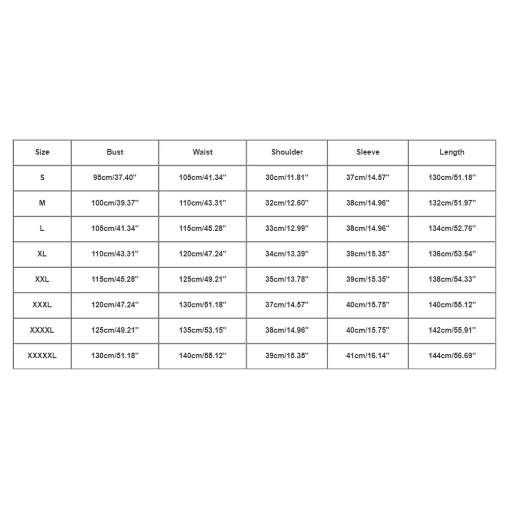 | XXXXXL | 130cm/51.18'' | 140cm/55.12'' | 39cm/15.35'' | 41cm/16.14'' | 144cm/56.69'' |