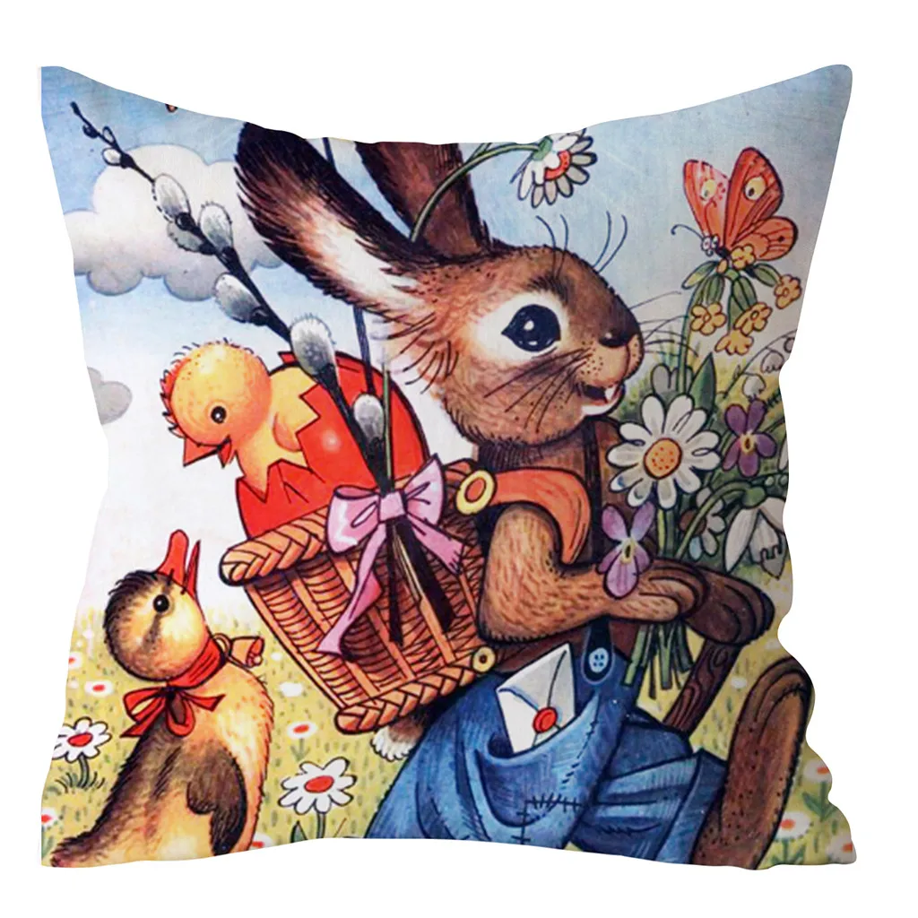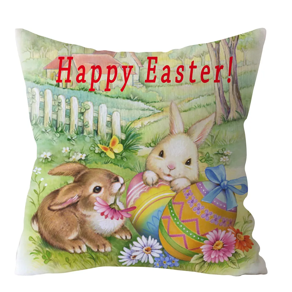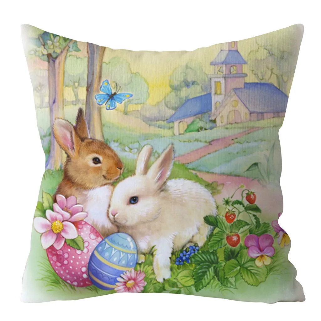 Easter Rabbit Print Pillow Case Polyester Sofa Car Cushion Cover Home Decor