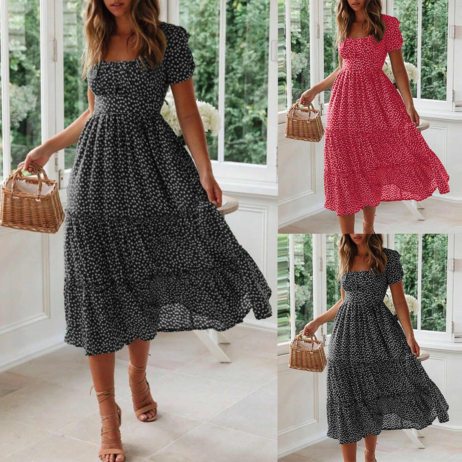 Elegant Floral Print A Line Dresses Women Short Sleeve