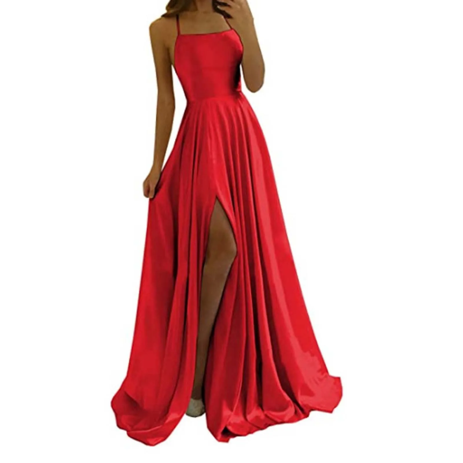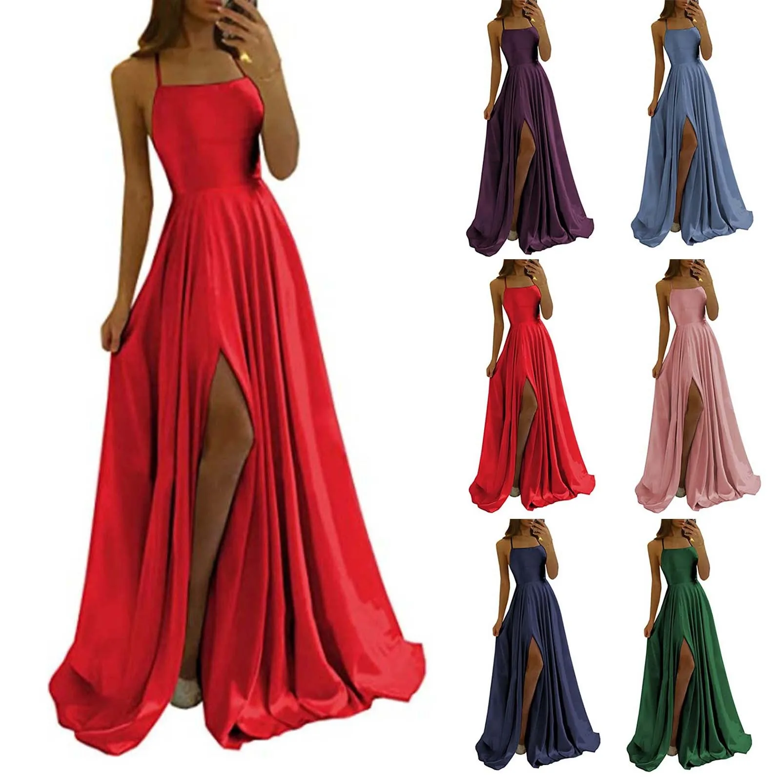 Elegant Women Maxi Evening Dress Solid Color Sexy Side Slit