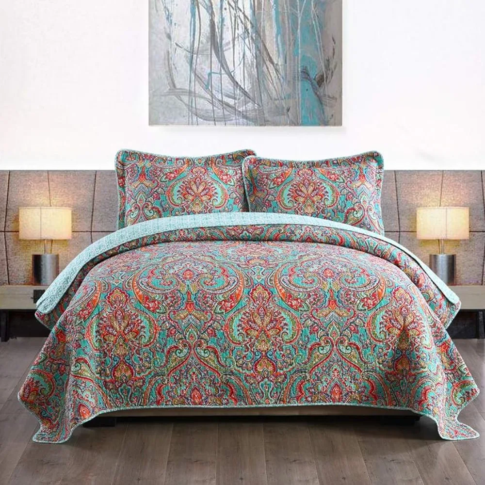 - Durable Bedding Quilt Set: European Gorgeous Floral pattern on the whole bedspread and accented on the sides of the spread with a scalloped edges to complete the bed quilt