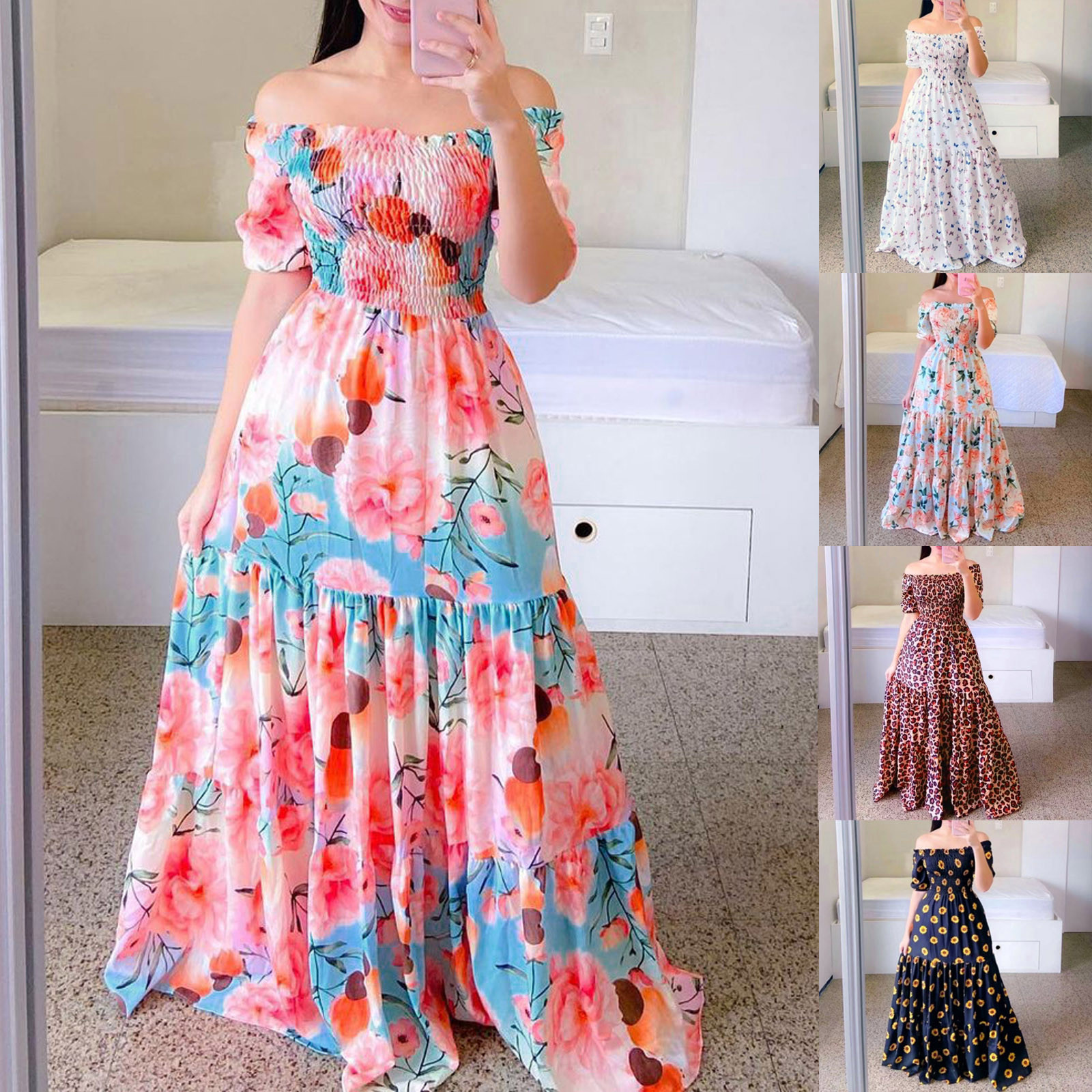 Floral Print Off Shoulder Sexy Dresses For Women 2024