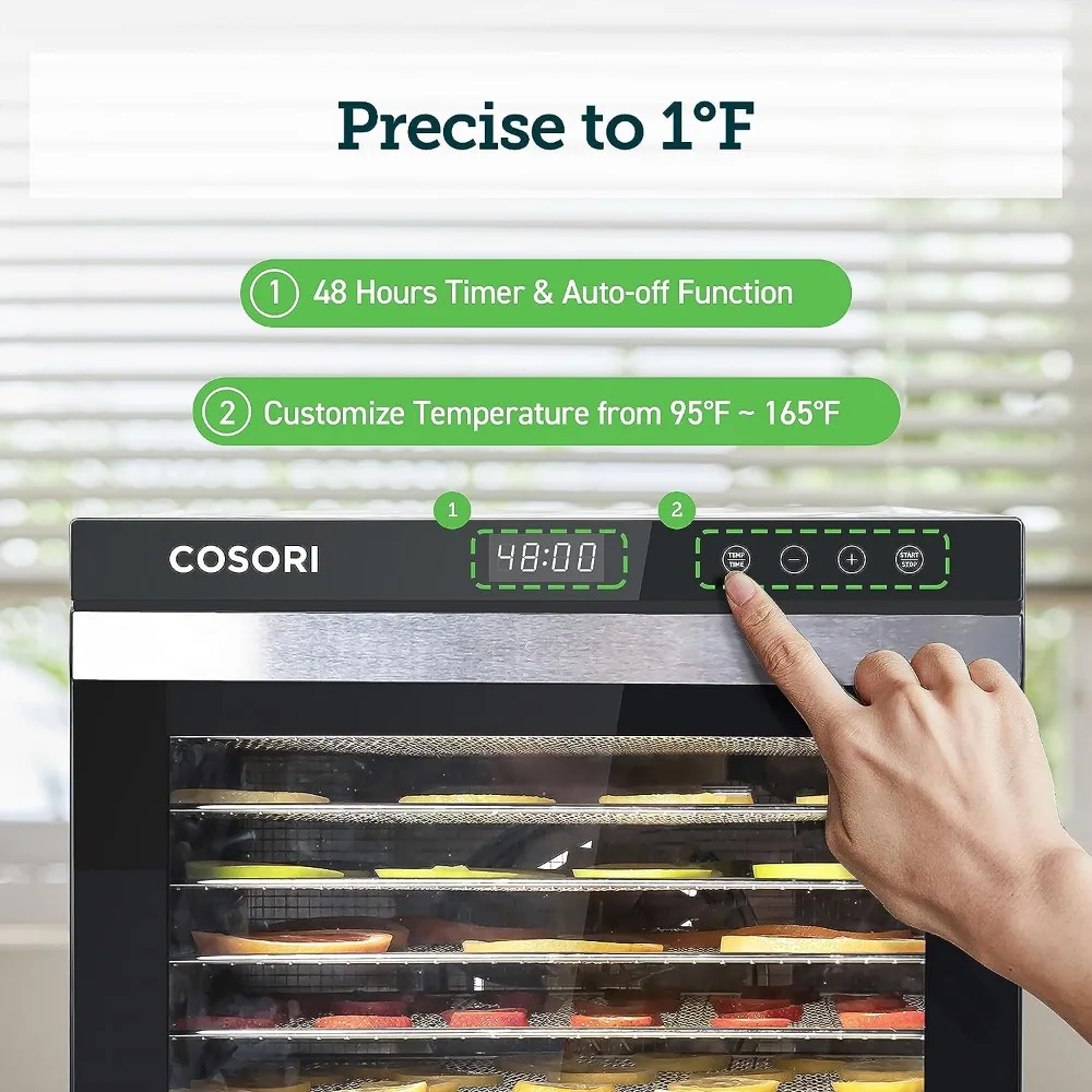 COSORI Food Dehydrator for Jerky, Large Drying Space with 6.48ft², 600W Dehydrated Dryer, 6 Stainless Steel Trays, 48H Timer, 165°F Temperature Control, for Herbs, Meat, Fruit, and Yogurt, Silver