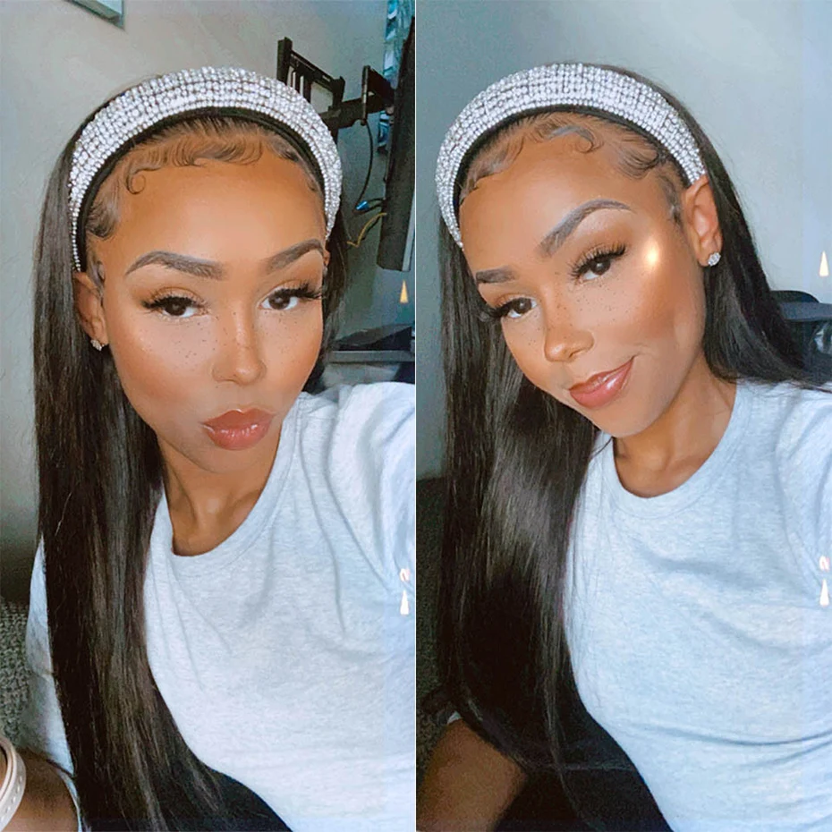Gabrielle Headband Wig Human Hair Brazilian Straight Glueless Full Machine Made Wigs for Women Natural Black Remy Hair