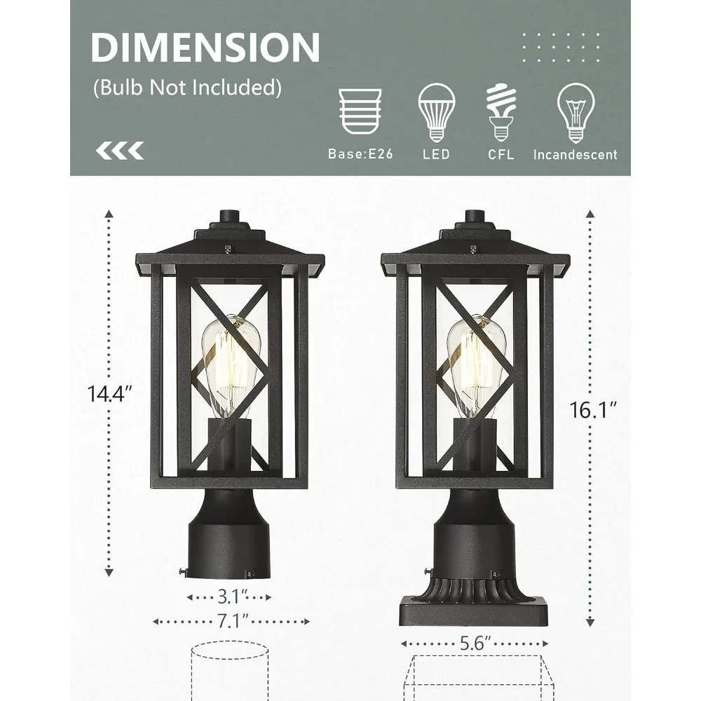 - OVER DIMENSION: 7.1"(L) x 7.1"(W) x 14.4"(H); PIER MOUNT BASE: 5.60"(L) x 5.60"(W) x 1.70"(H), pier mount base inside the box ; Fits on 3" diameter post pole.