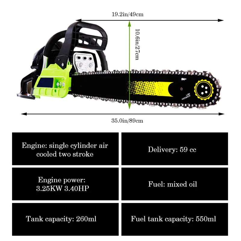 Gas Gasoline Powered Chain Saw 59cc Engine