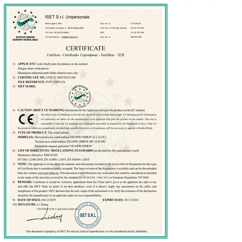 Cut-in wind speed: 2.5 m/s