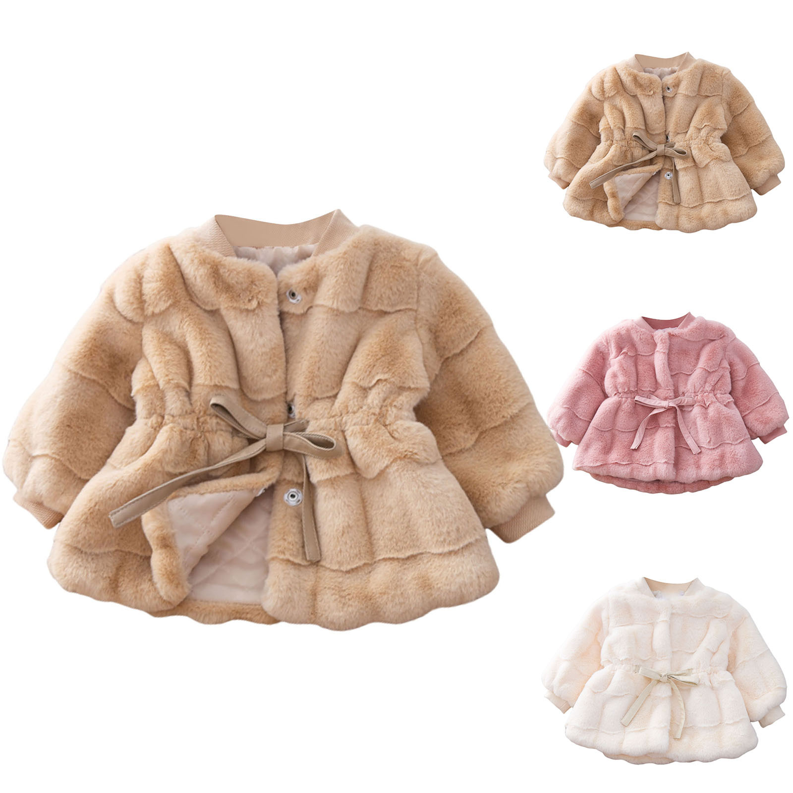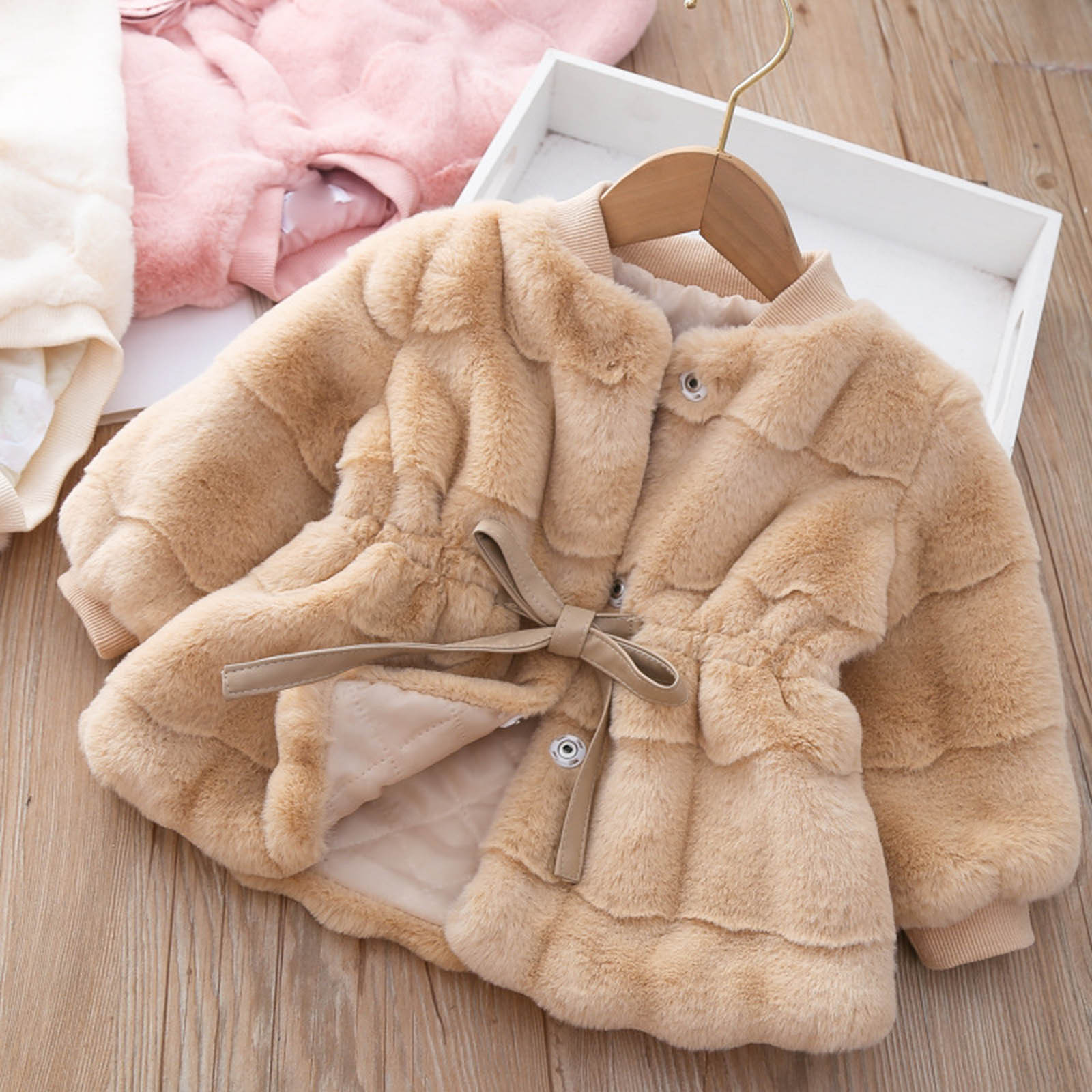 Girls Faux Fur Coats Thicken Fleece Jackets 4 Years & Up