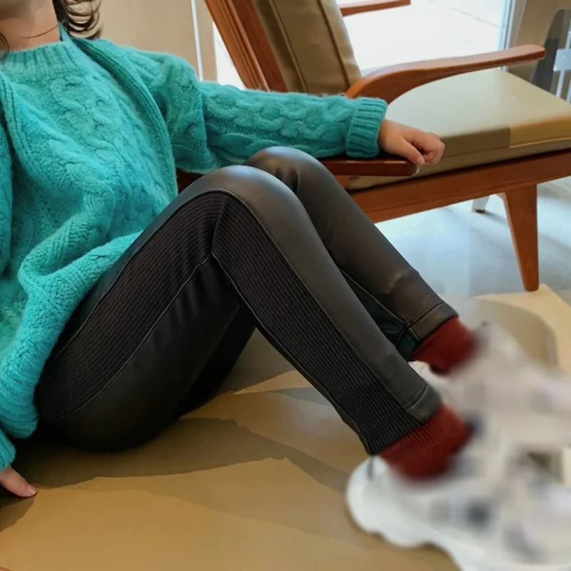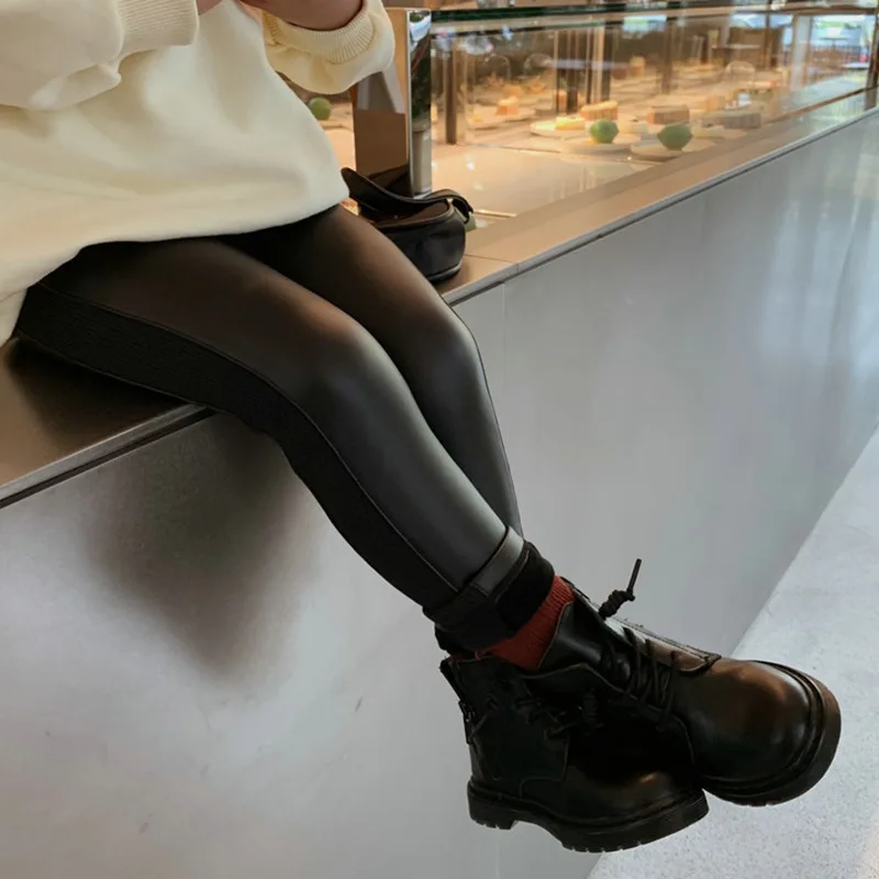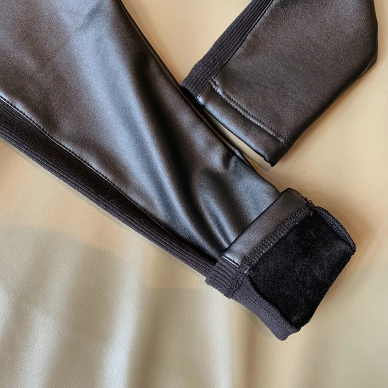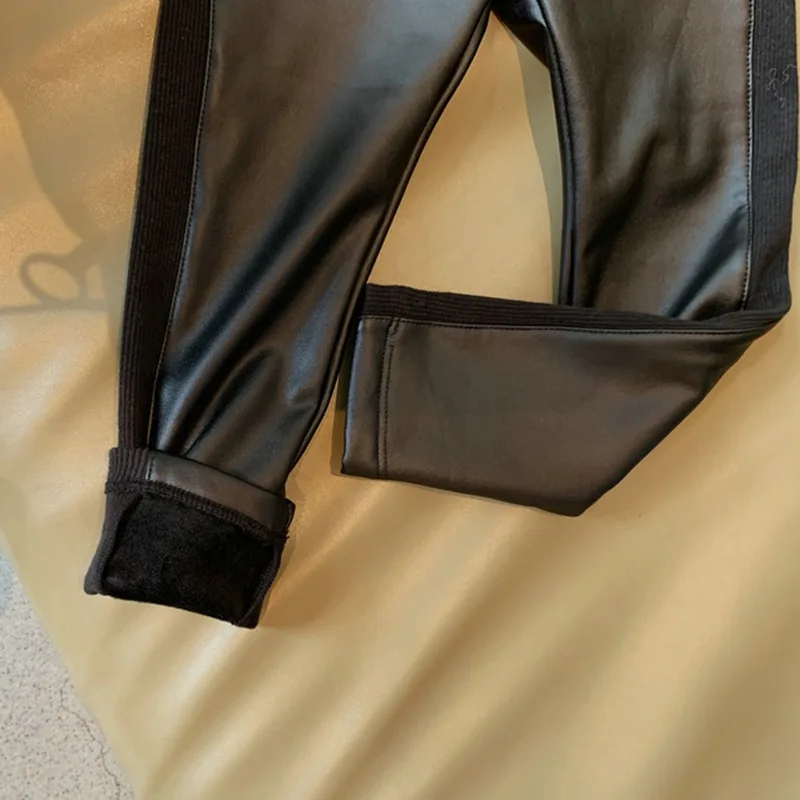 Model Number: Girls' soft leather elastic Plush warm leather pants