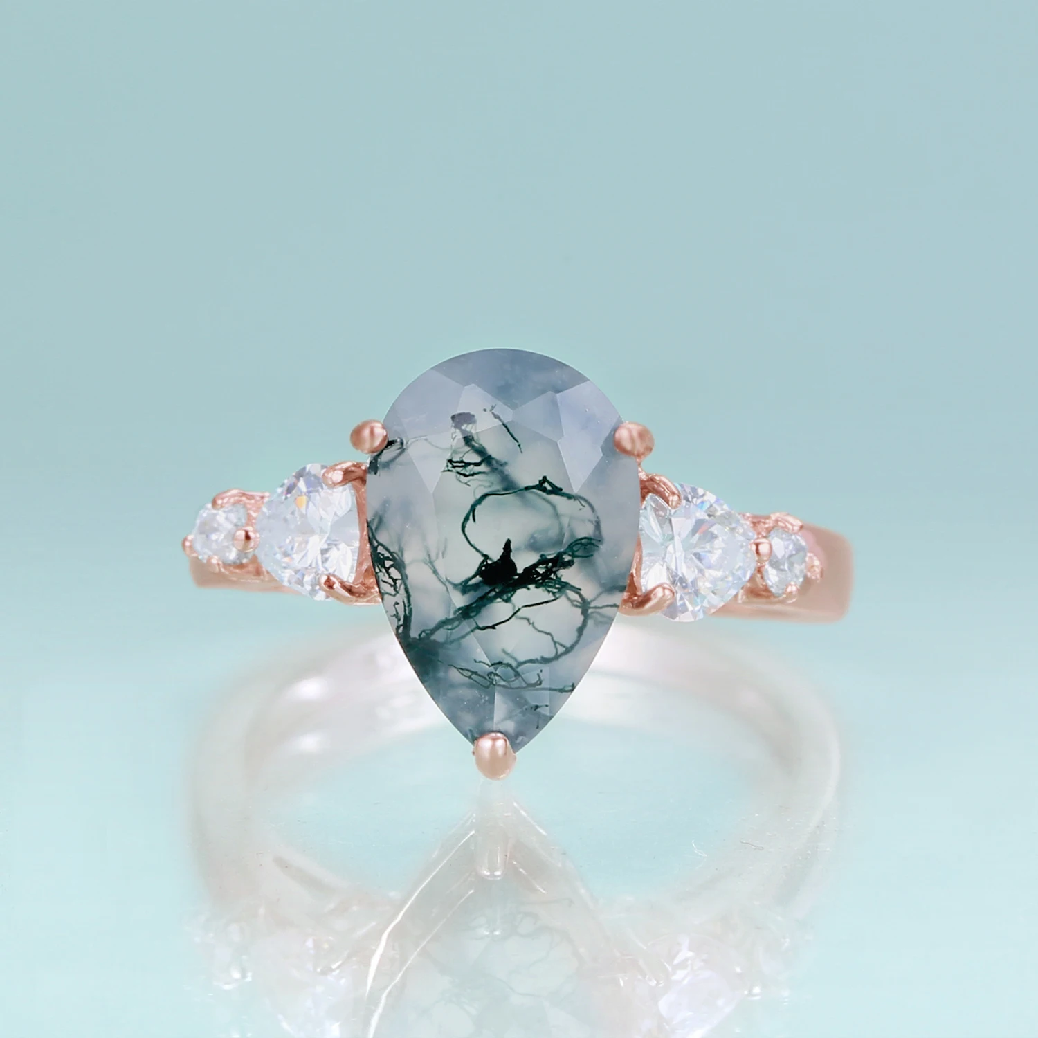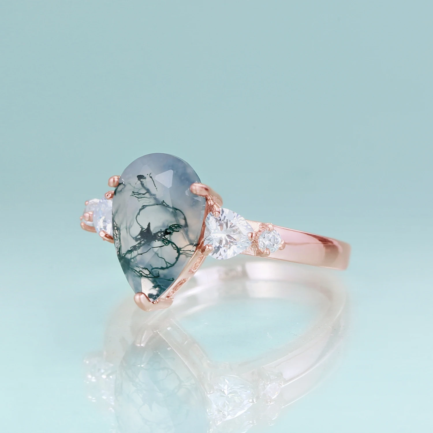 Healing Crystals Moss Agate Gemstone Sterling Silver Handmade