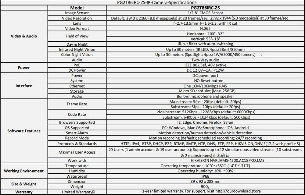 Model Number: PG2T86IRC-ZS PG2T56IRC-ZS