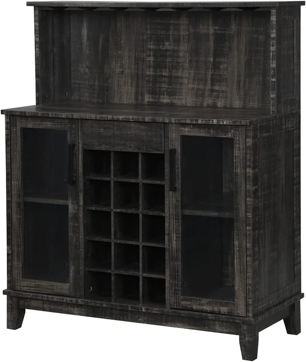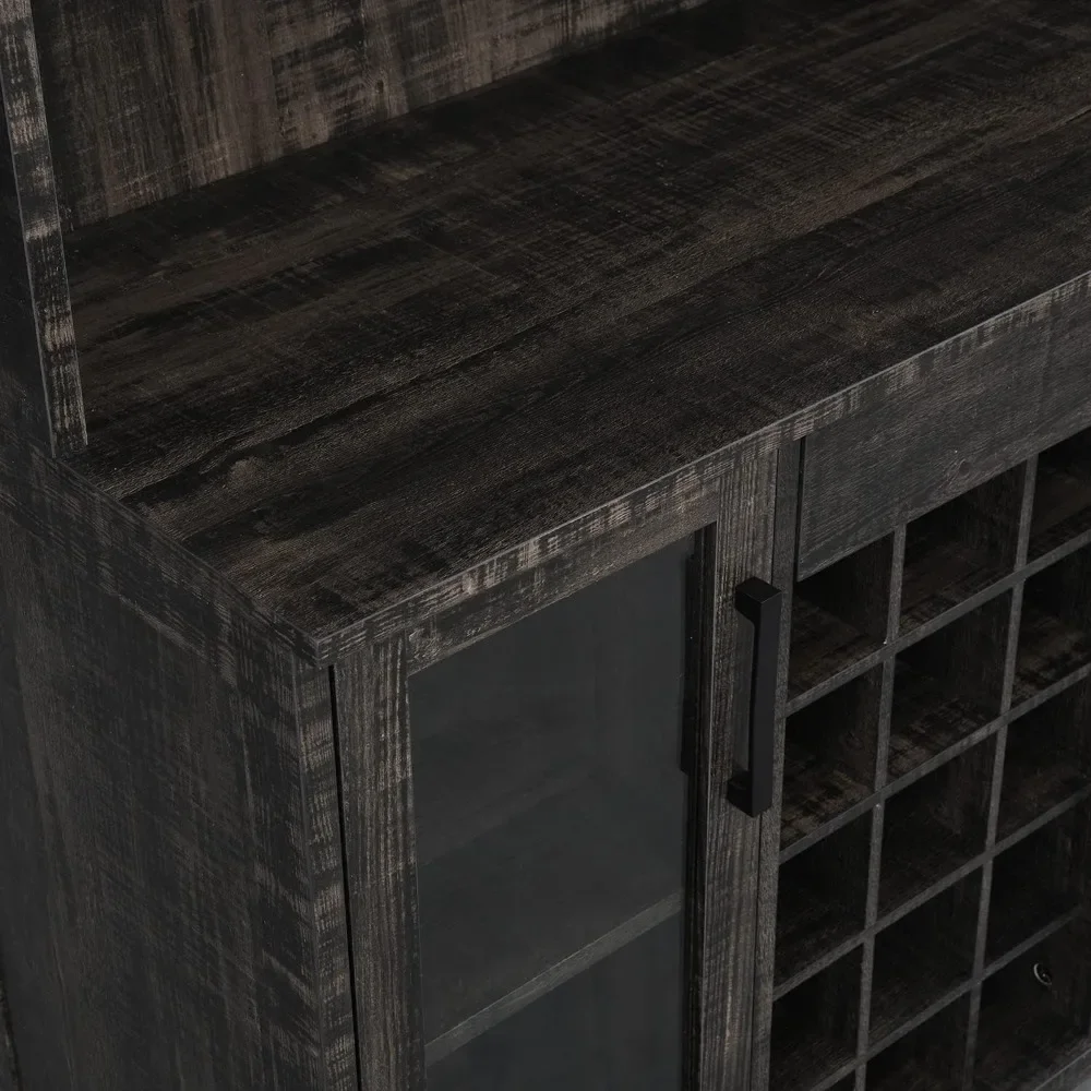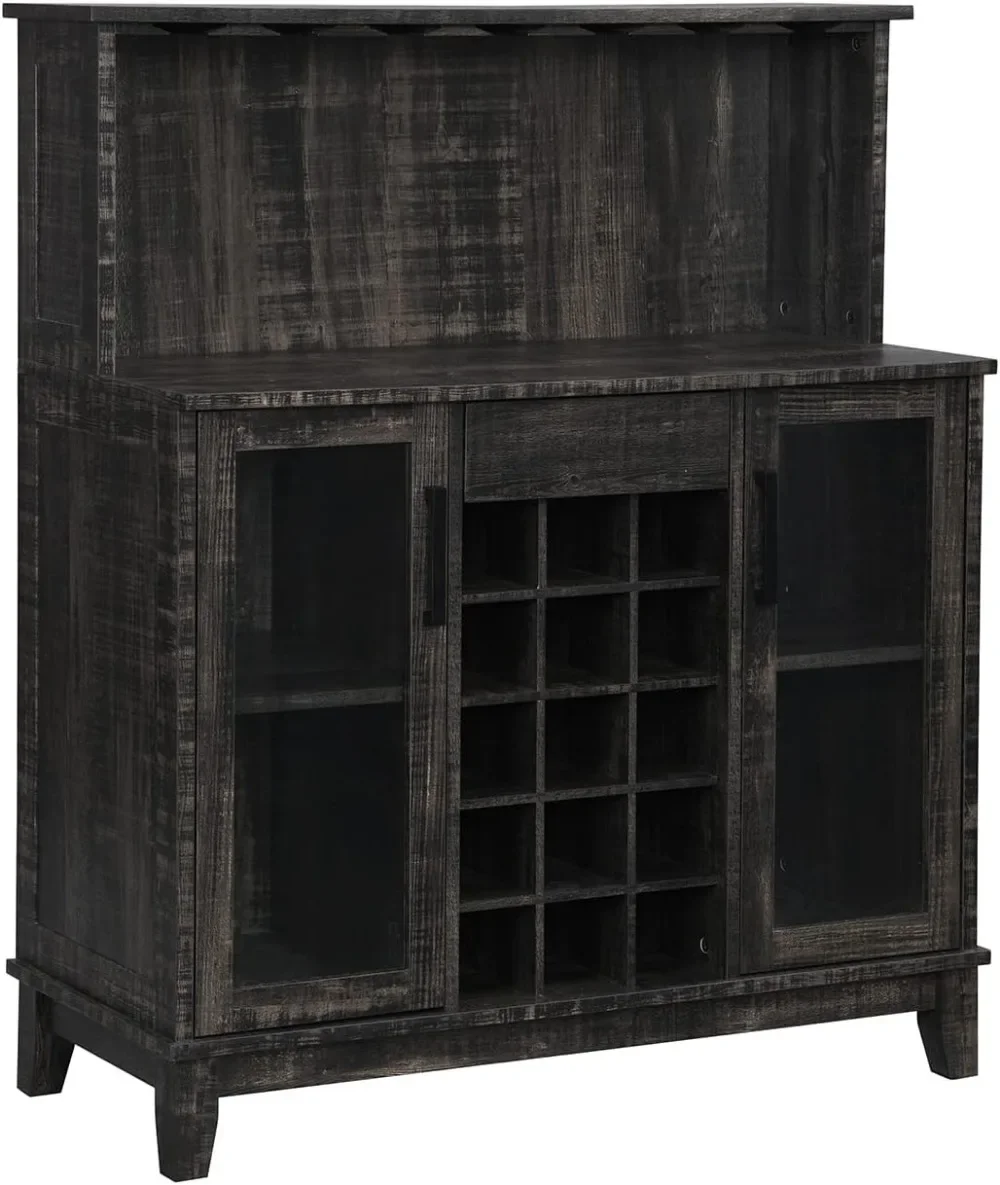 Home Source Bar Cabinet with Wine Rack and Glass Doors
