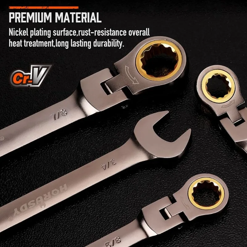 HORUSDY 24-Piece Flex-Head Ratcheting Wrench Set Set Metric SAE