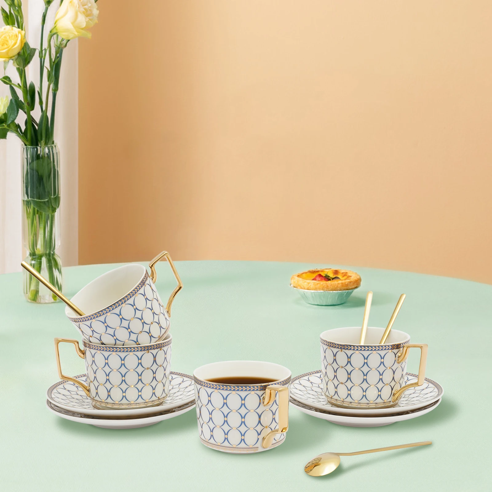 Golden Handle: The gold-electroplating handle of each cup with a smooth arc design will not fade, ensures easy hanging when not in use, has a comfortable grip, and prevents your hands from scalding.