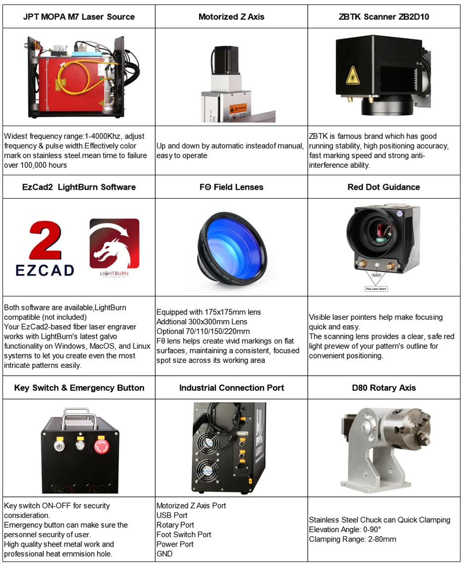 JPT MOPA M7 100W Steel Fiber Laser Marking Color Laser