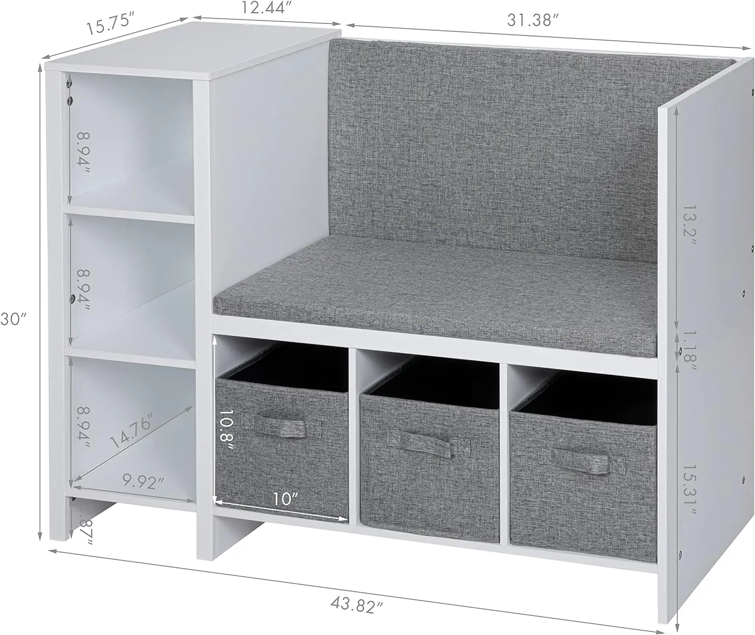Kids Bookcase with Reading Nook, 6-Cubby Toy Storage Organizer