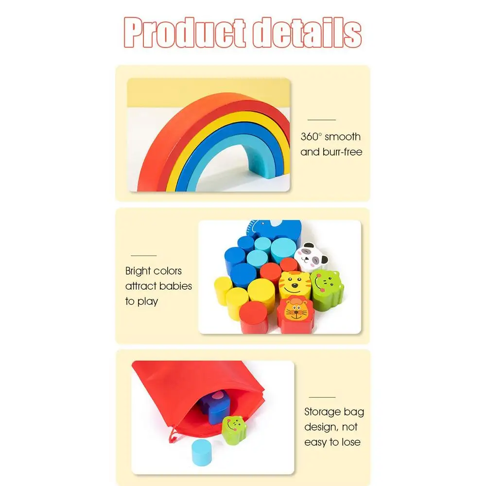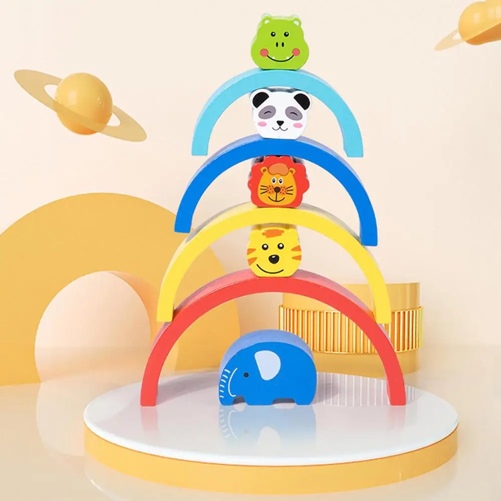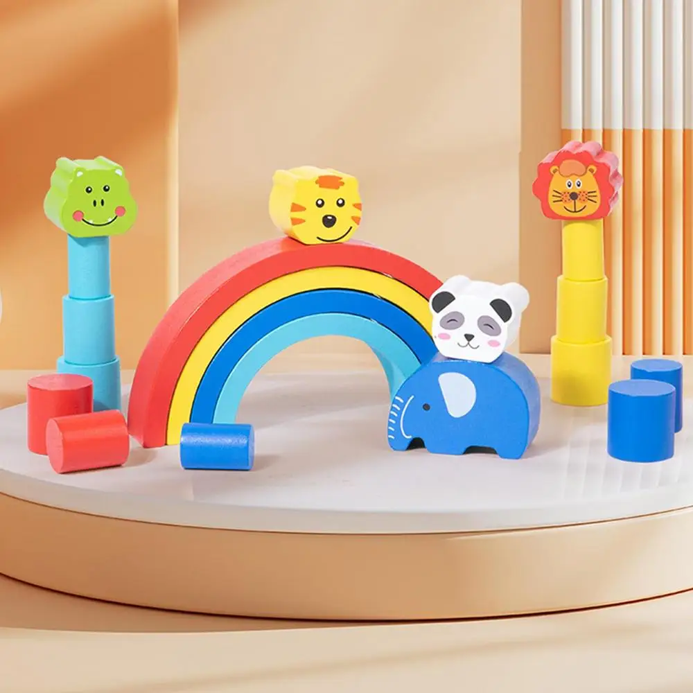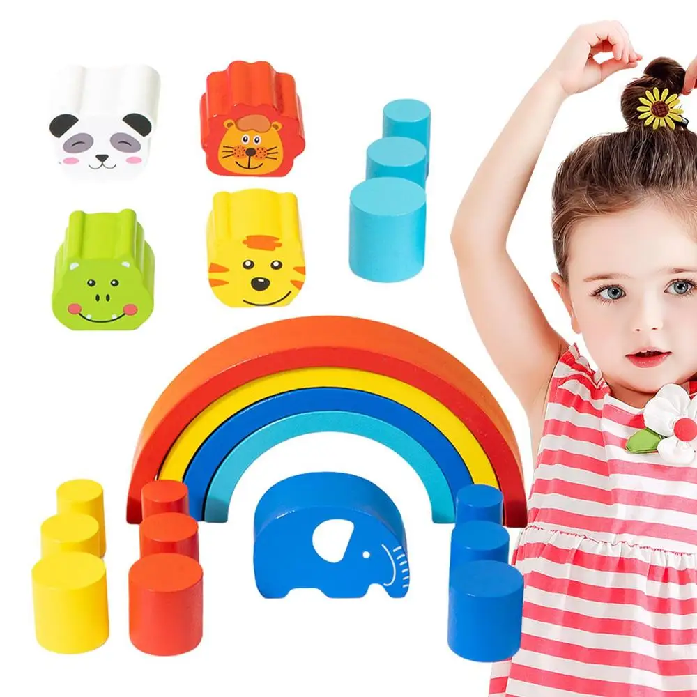 Kids Rainbow Stacking Blocks Wooden Puzzle Blocks Stacking Toys