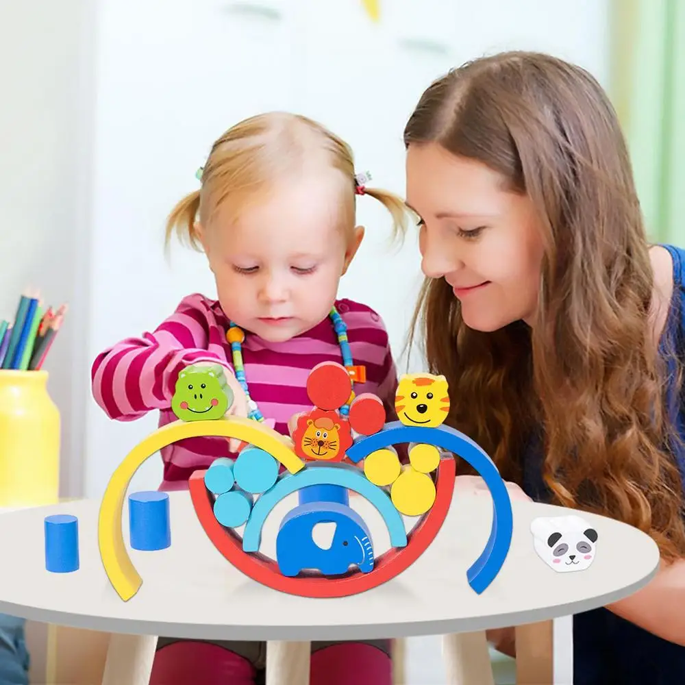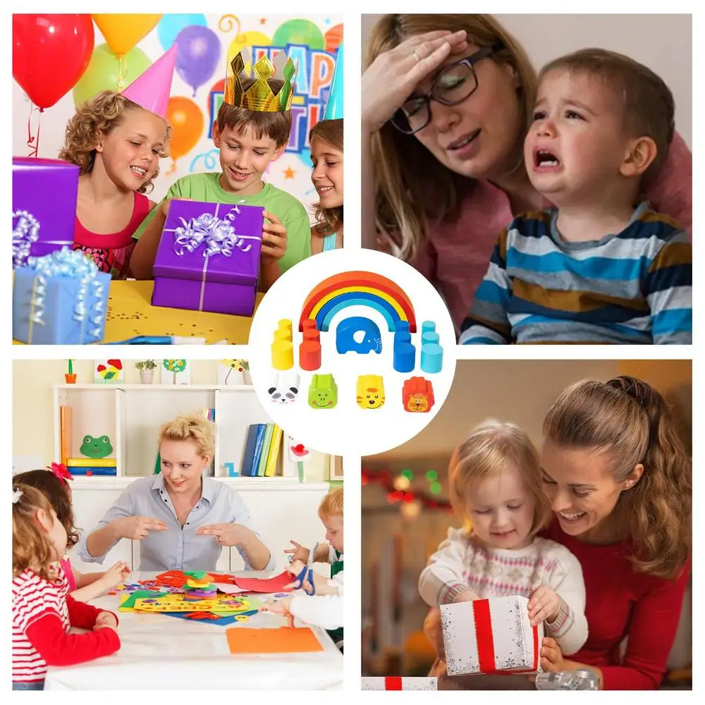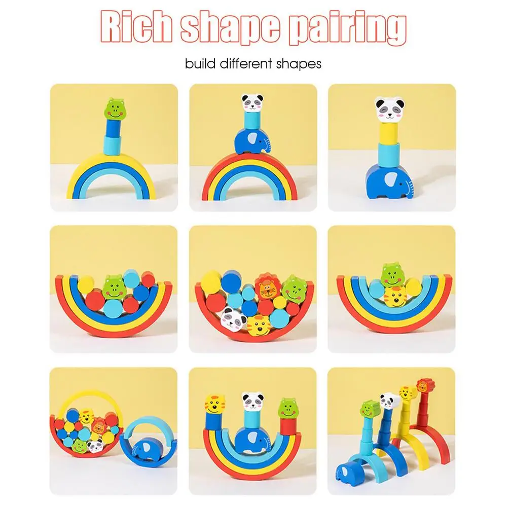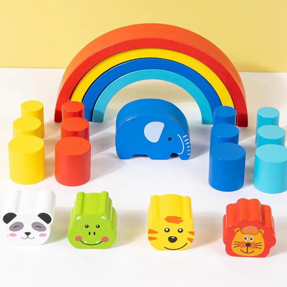 Kids Rainbow Stacking Blocks Wooden Puzzle Blocks Stacking Toys