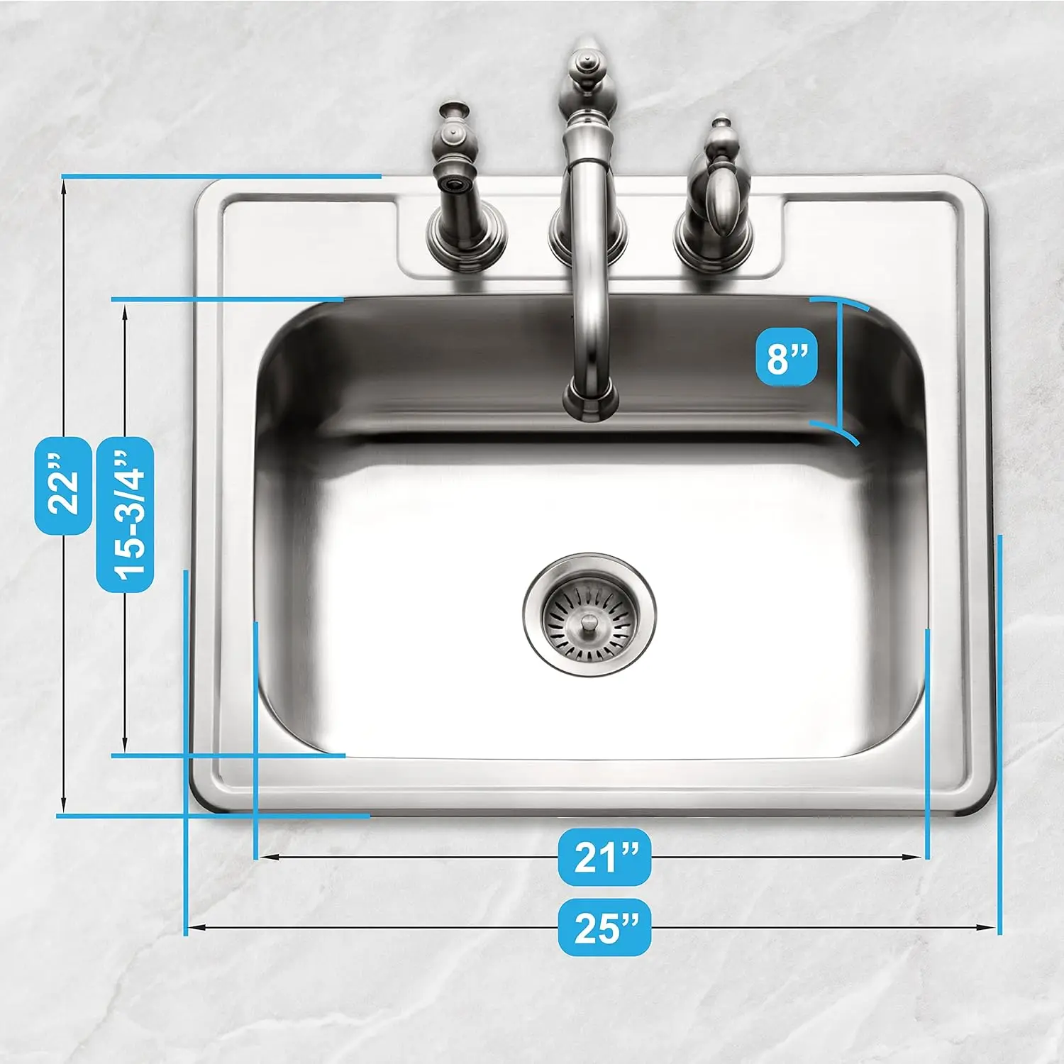 Kitchen Sink - 25" Topmount Drop In Multipurpose Sink