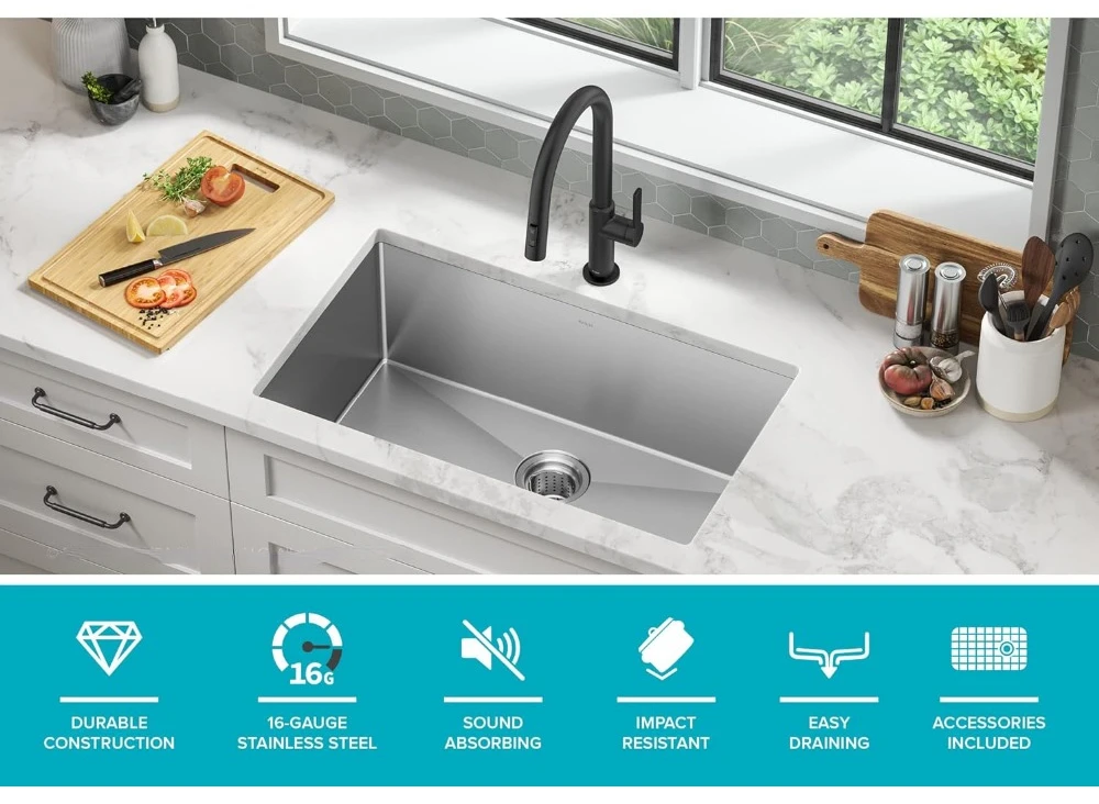 kitchen sink KHU100-30 Kitchen Sink, 30 Inch, Stainless Steel