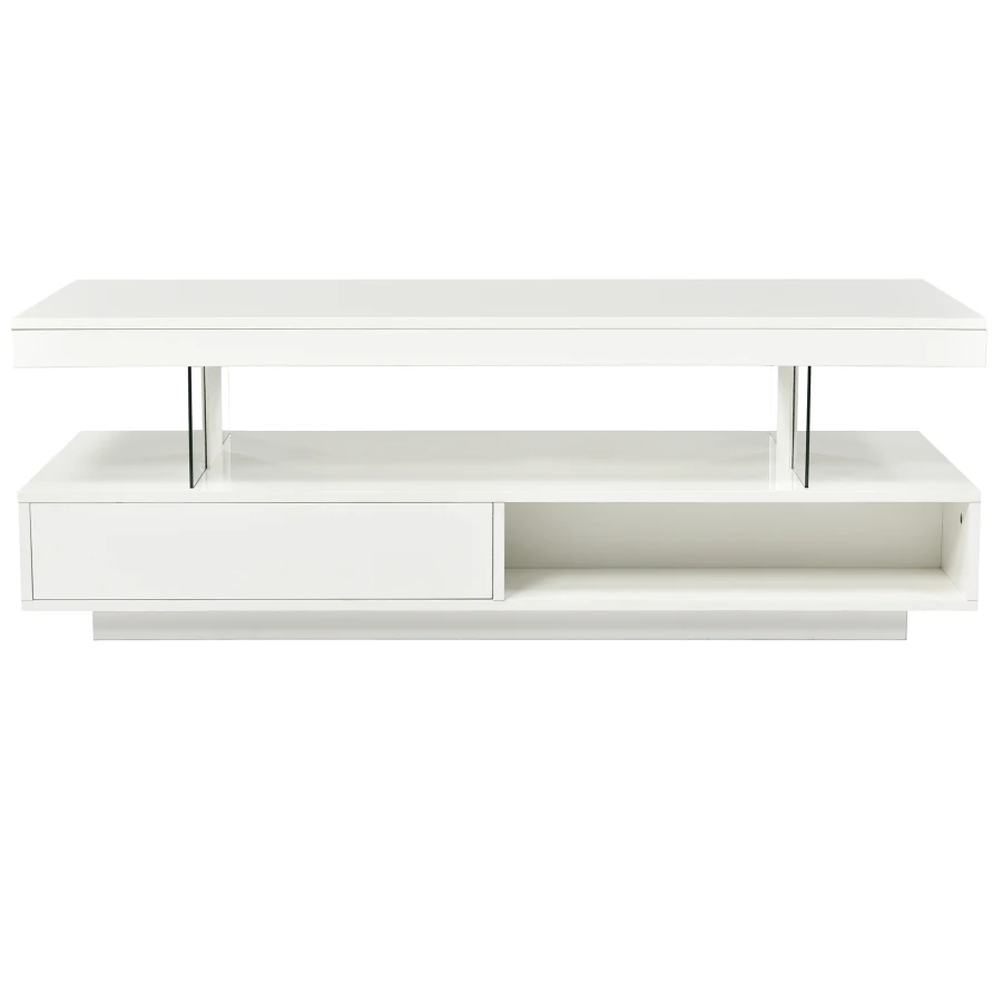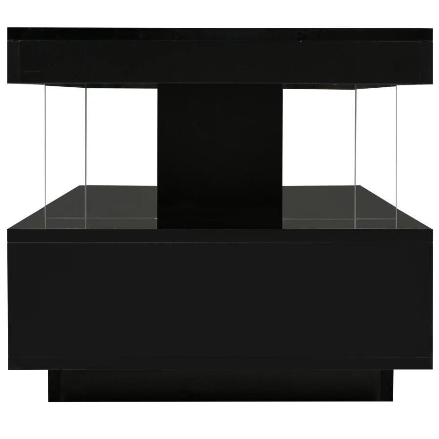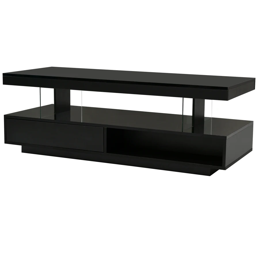 LED Coffee Table with Storage, Modern Center Table 2 Drawers