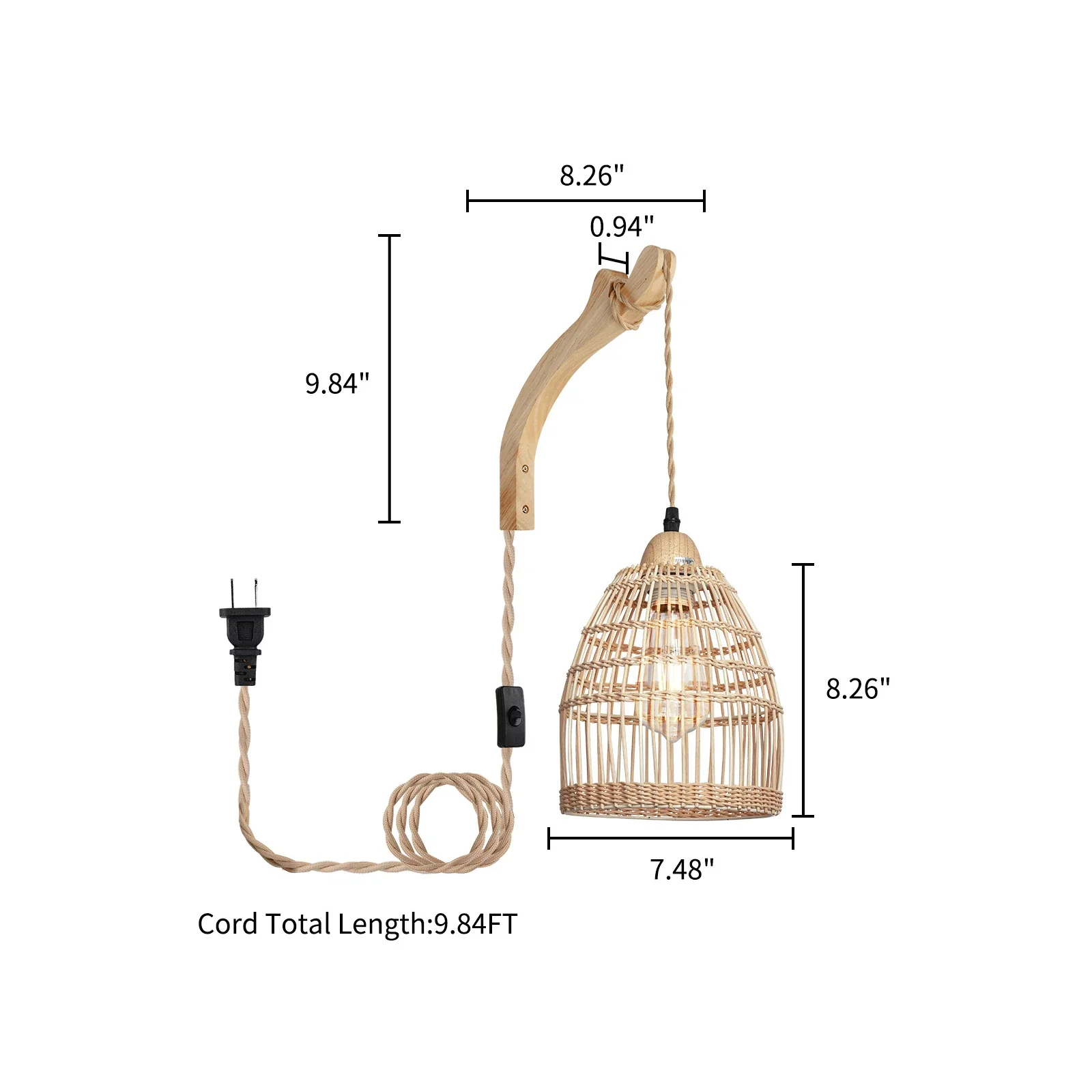 Led Rattan Wall Lamp E26 Bedroom Living Room