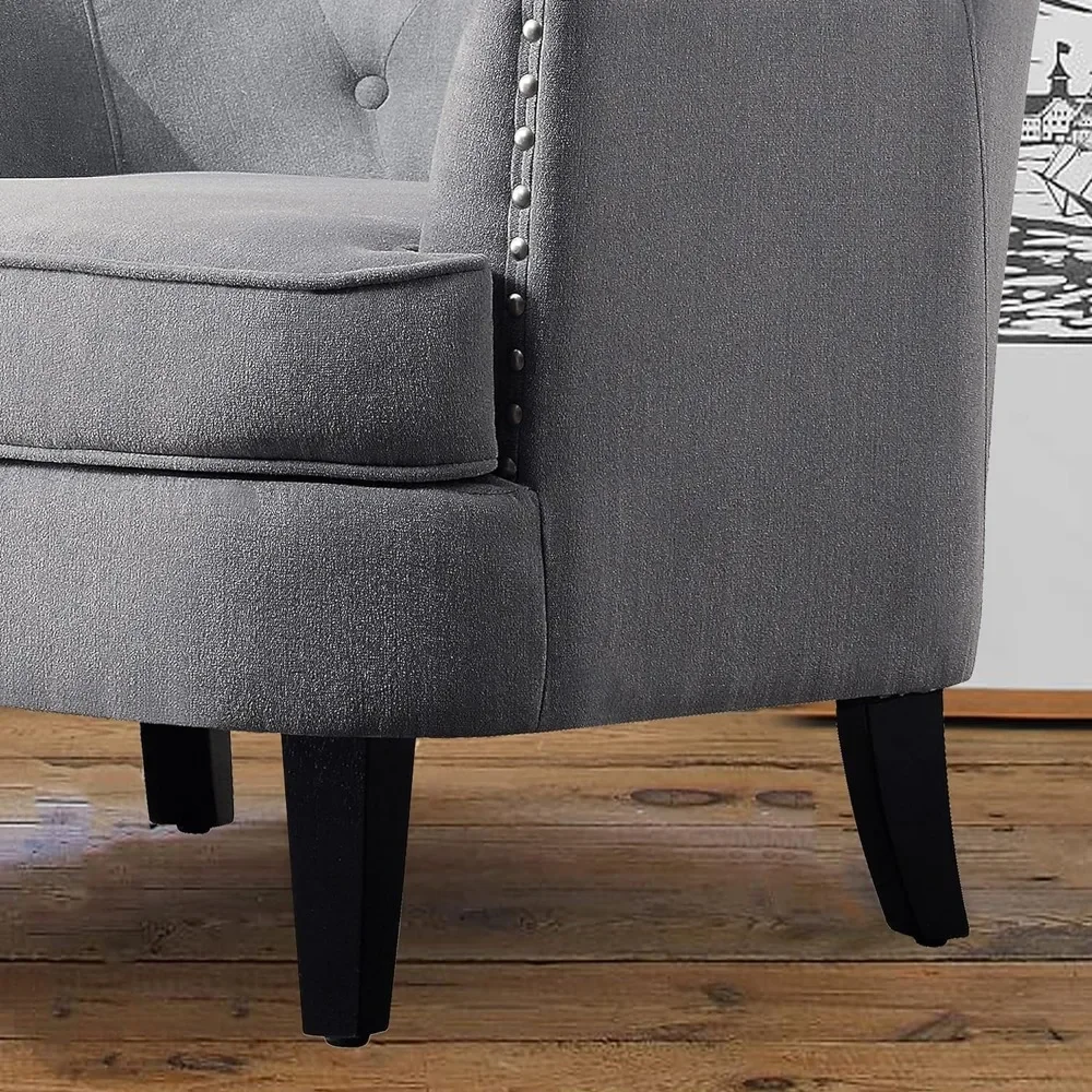 PREMIUM QUALITY Tufted button back with nailhead detail on edge,solid wood taper legs in dark espresso finishes.The chair is sleek and comfortable to lean on for any late night reading and made with high quality linen that is durable and is padded with extra cushion to provide infinite coziness. |