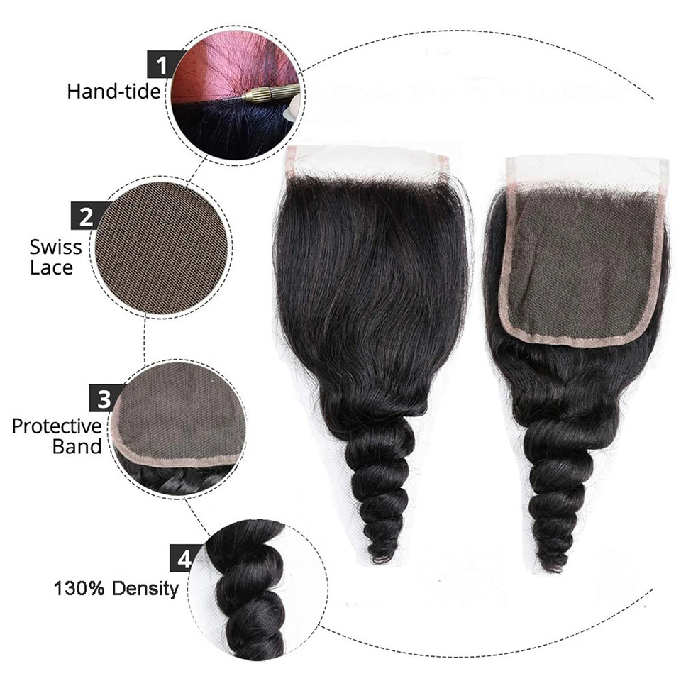 Loose Wave Hair Lace Closure Human Hair 4X4 Free Part