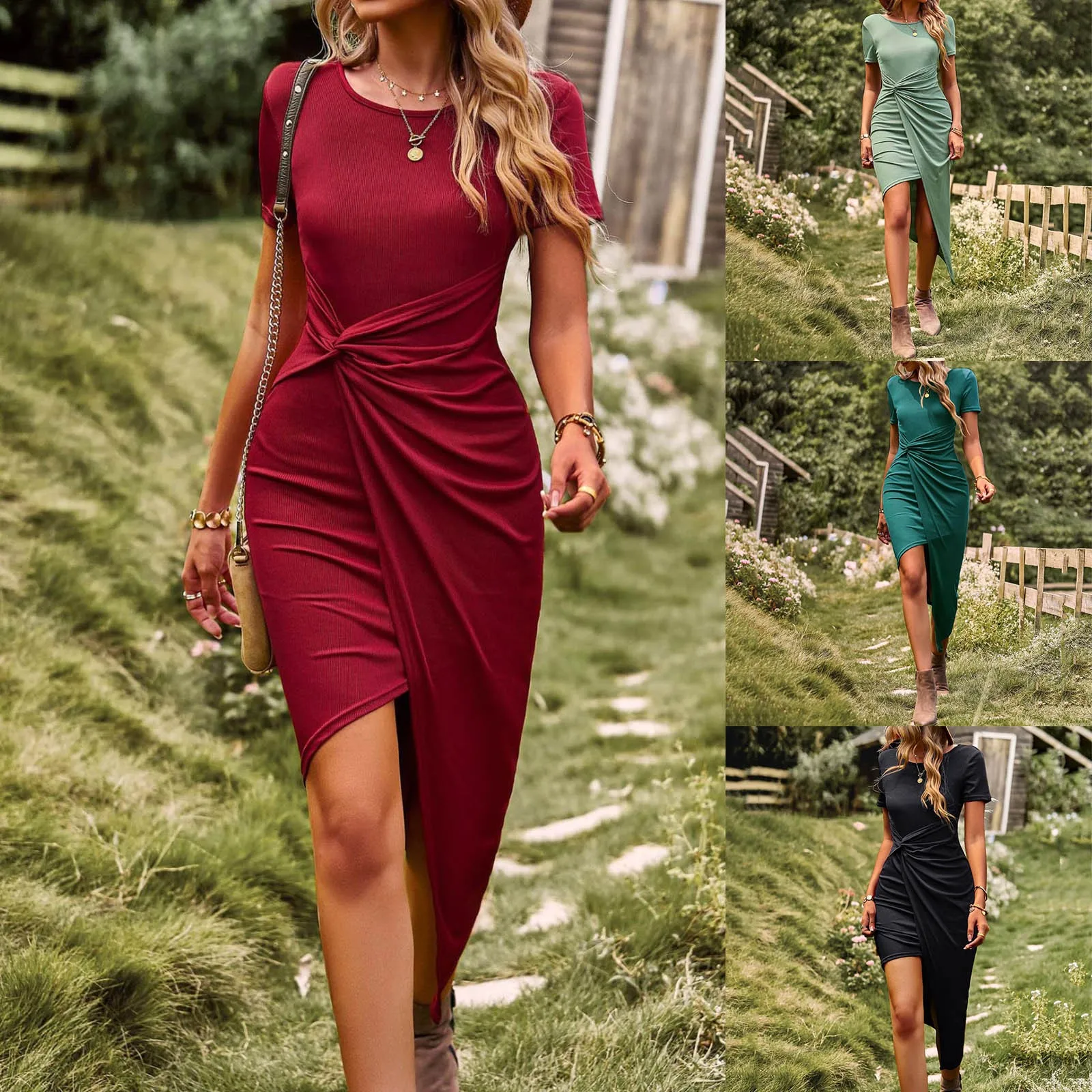 Luxury Knitted Short Sleeve Long Dress