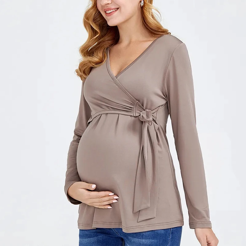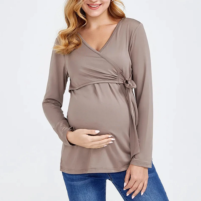 Maternity Blouses Long Sleeve V-neck Breastfeeding Shirt